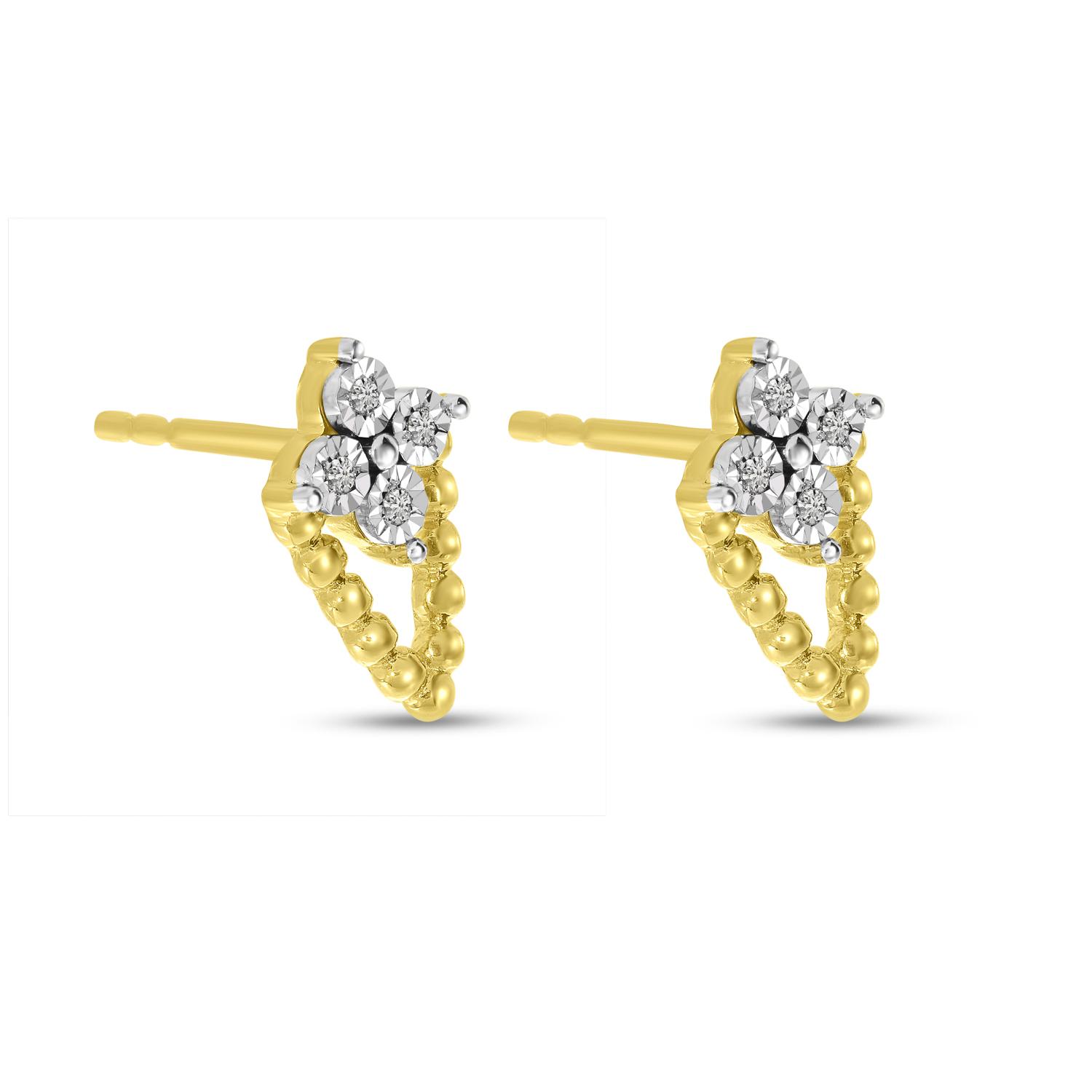 14K Yellow Gold Diamond Cluster Beaded Earrings