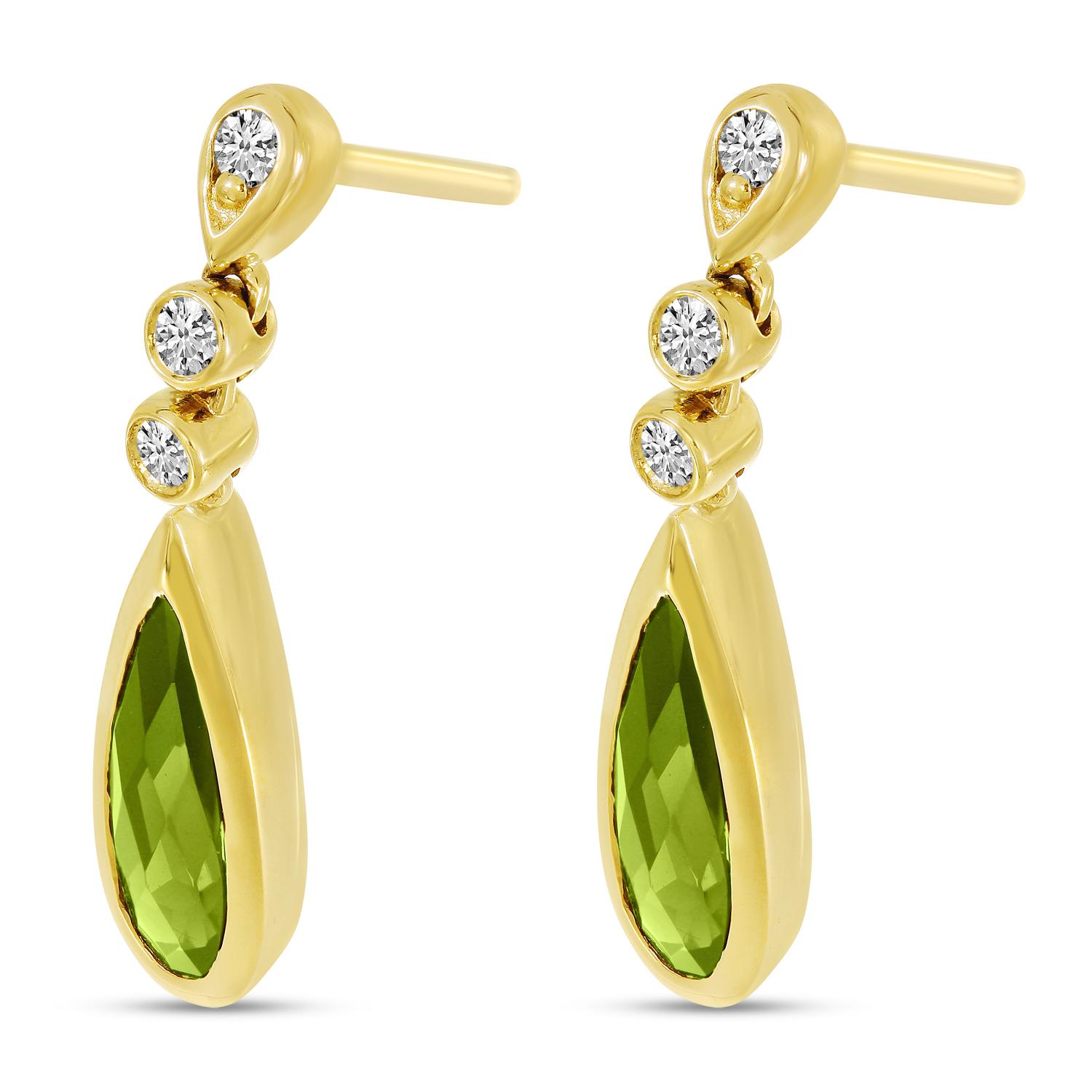 14K Yellow Gold Elongated Pear Peridot and Diamond Teardrop Earrings