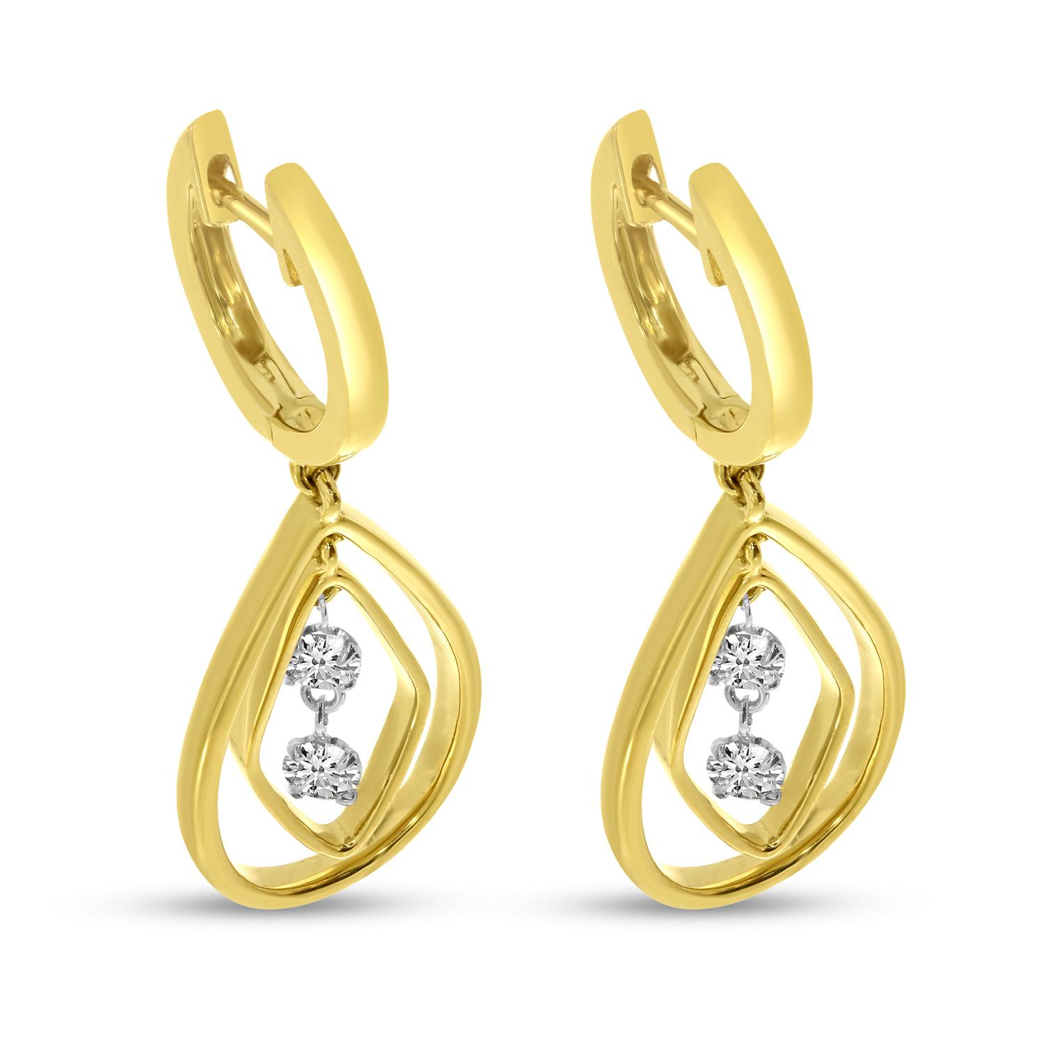 14K Yellow Gold Floating Diamond Drop Earrings