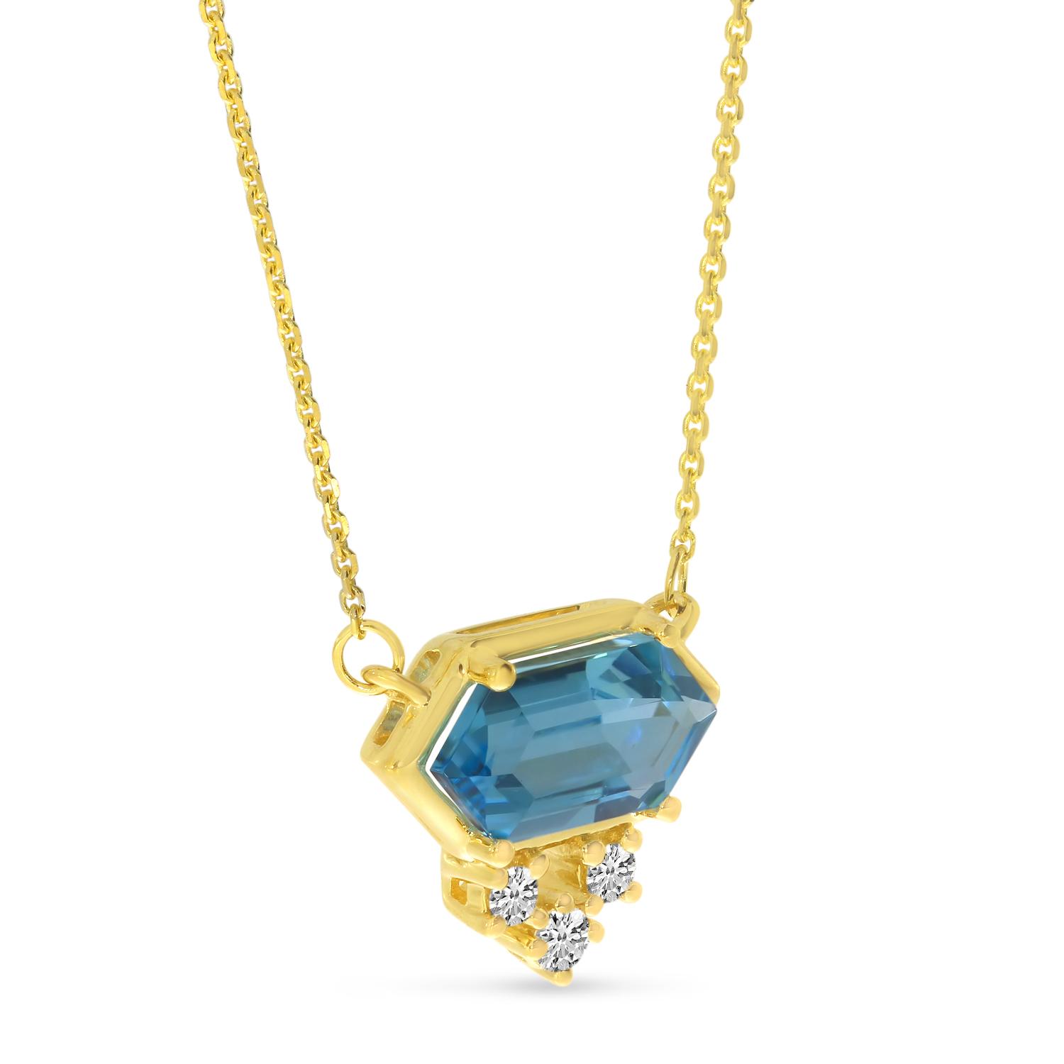 14K Yellow Gold Hexagon Blue Topaz and Diamond Necklace