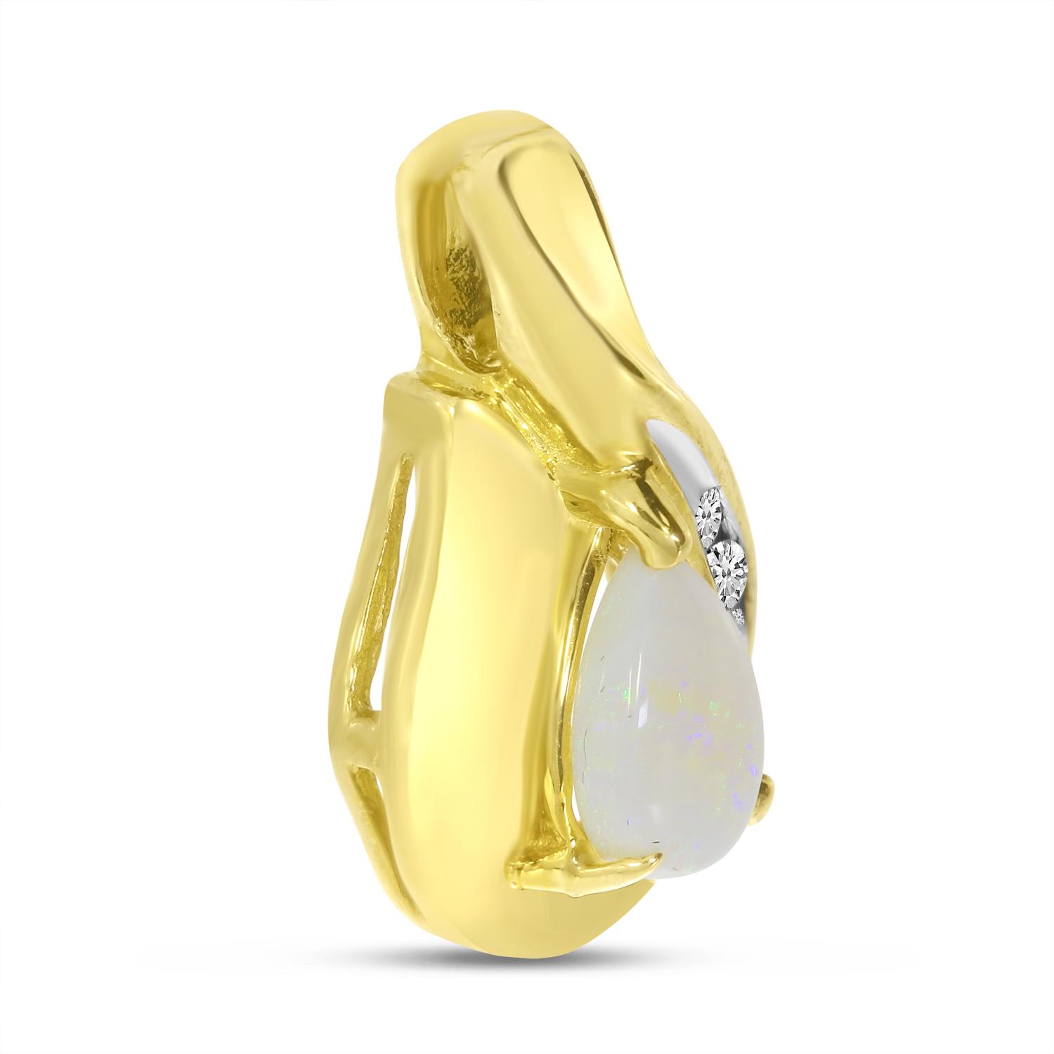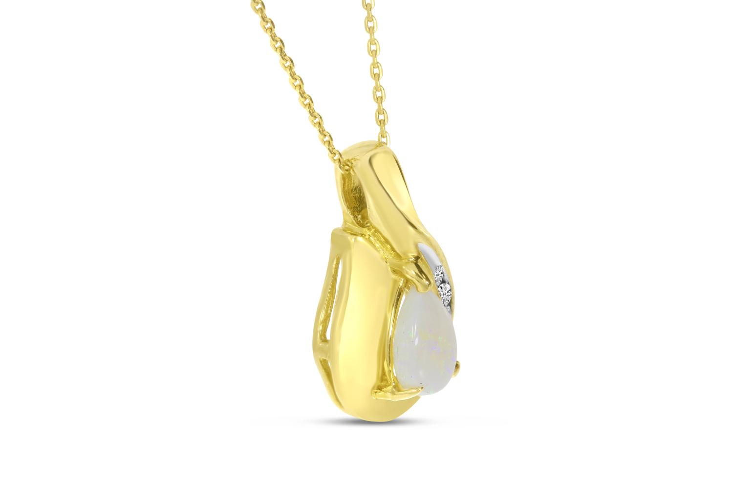 14K Yellow Gold Pear Opal Pendant with Diamond