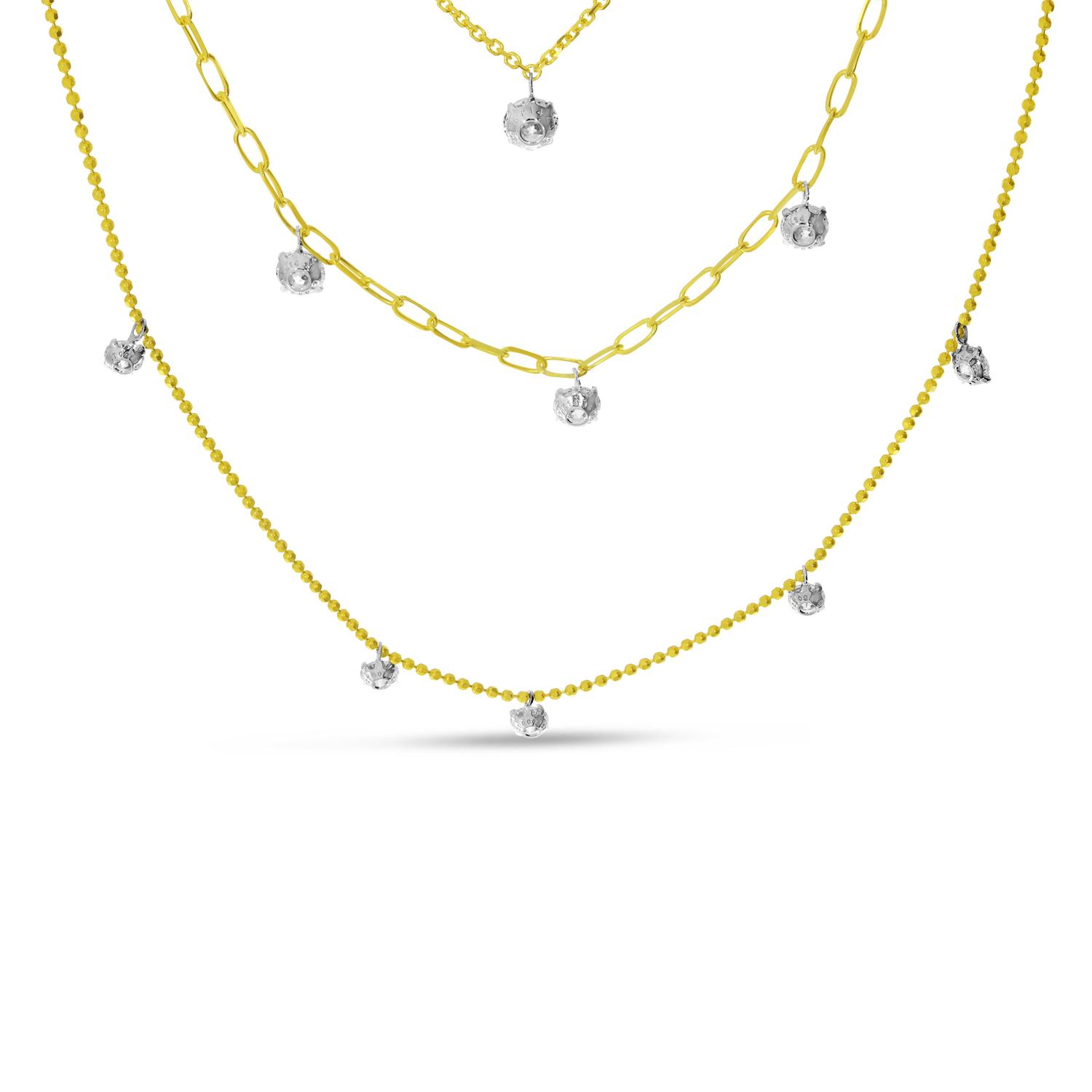 This 14K Yellow Gold necklace from the Floating Diamonds Collections features 9 round brilliant diamonds making up 1.2 carat total weight.