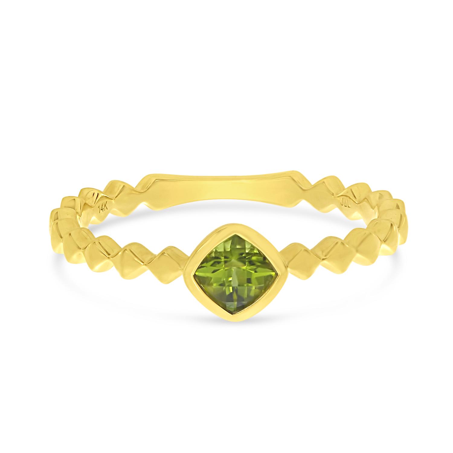 14k Yellow Gold 4 mm Cushion Peridot Beaded band Ring