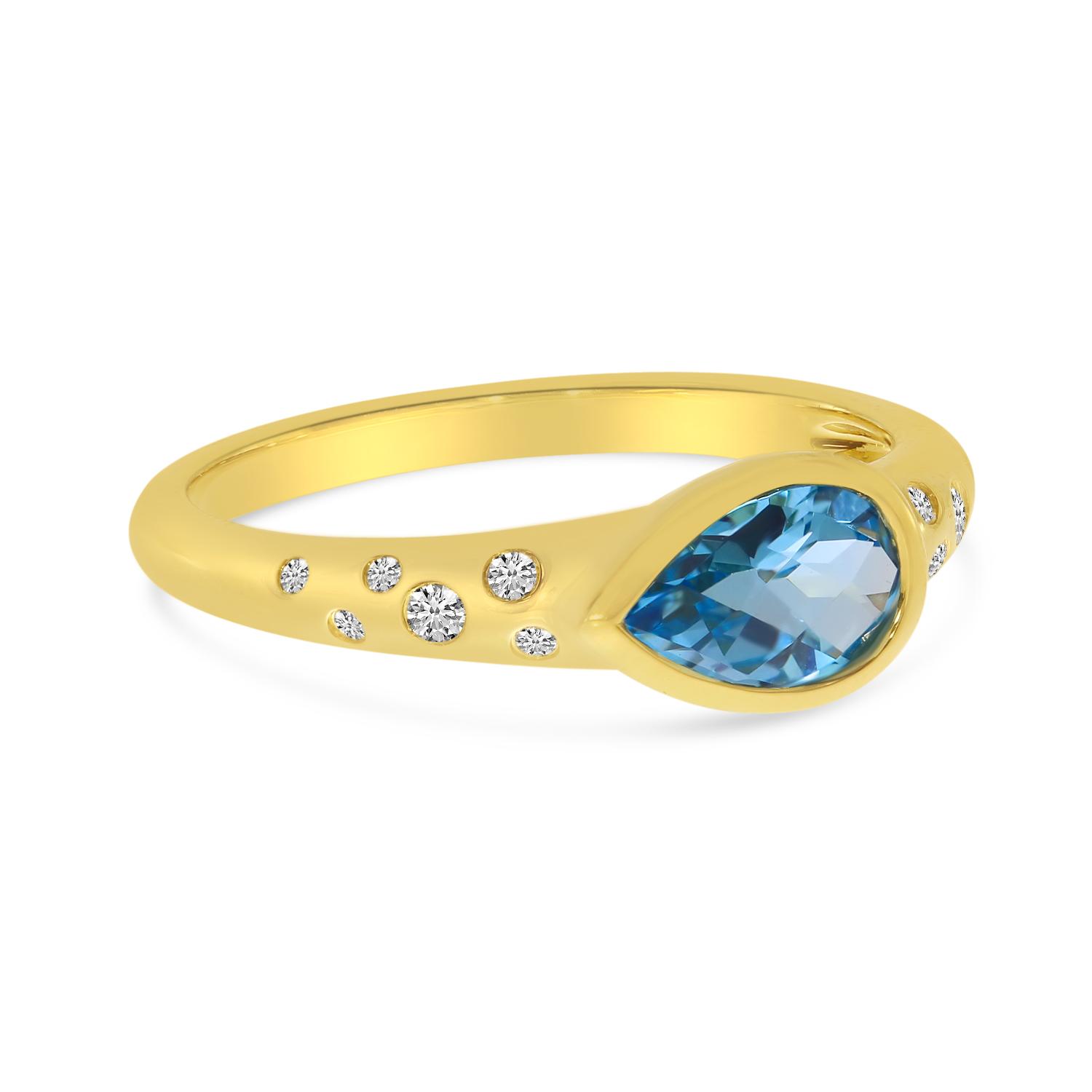14k Yellow Gold Pear Blue Topaz And Diamond Band Ring
