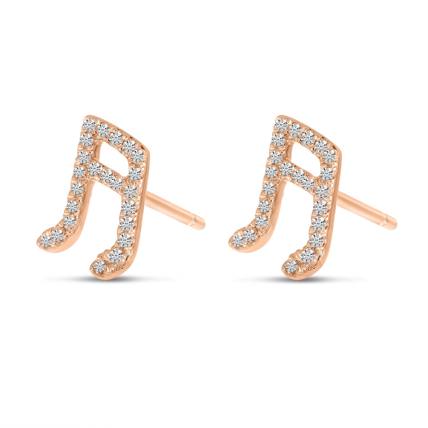 14K Rose Gold Diamond Music Note Stud Earrings