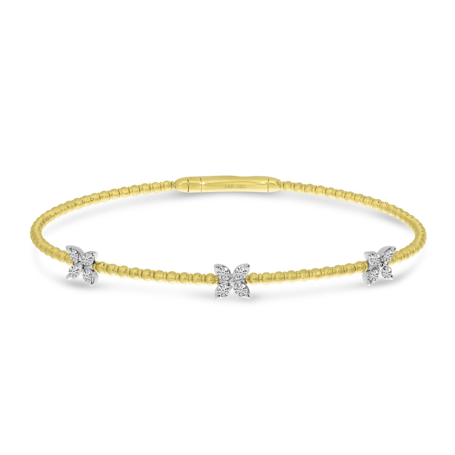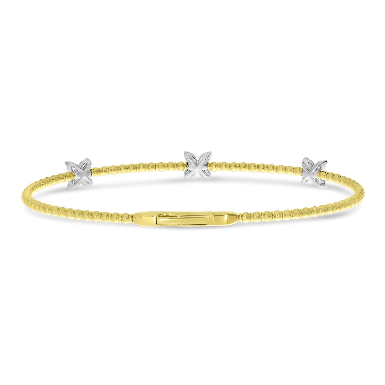 14K Two Tone Gold 3 Station Diamond Flower Flex Bracelet