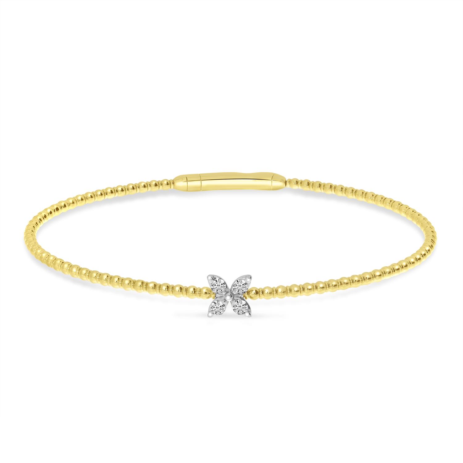 14K Two Tone Gold Diamond Flower Flex Bracelet