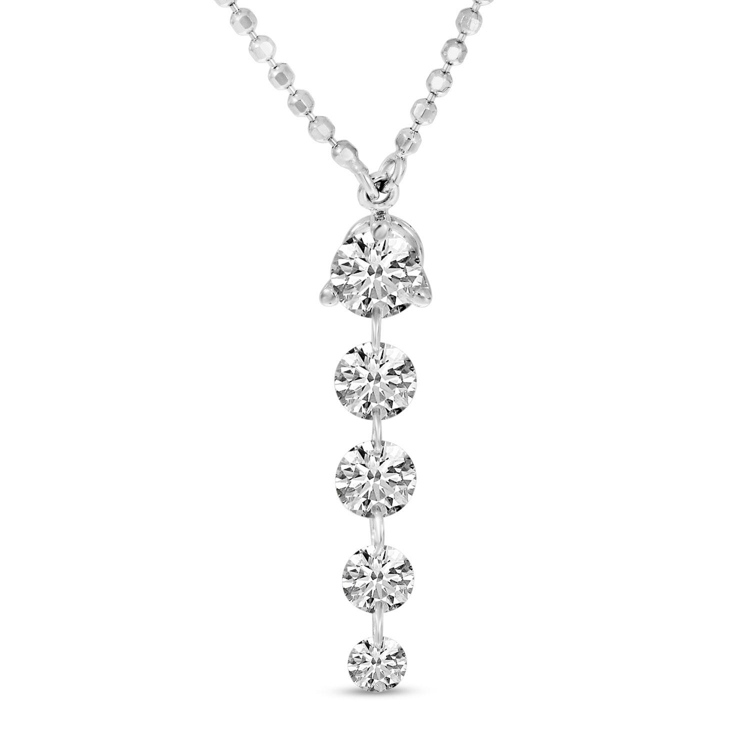 14k White Gold Dashing Diamond 5-Stone Drop Necklace