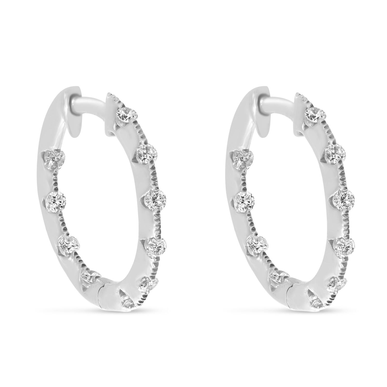 14K White Gold Inside Outside Hoop .50 Ct Diamond Earrings