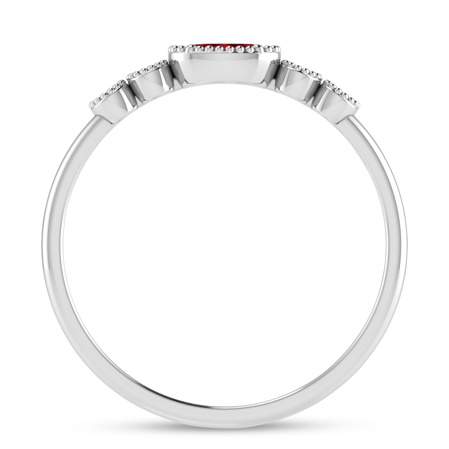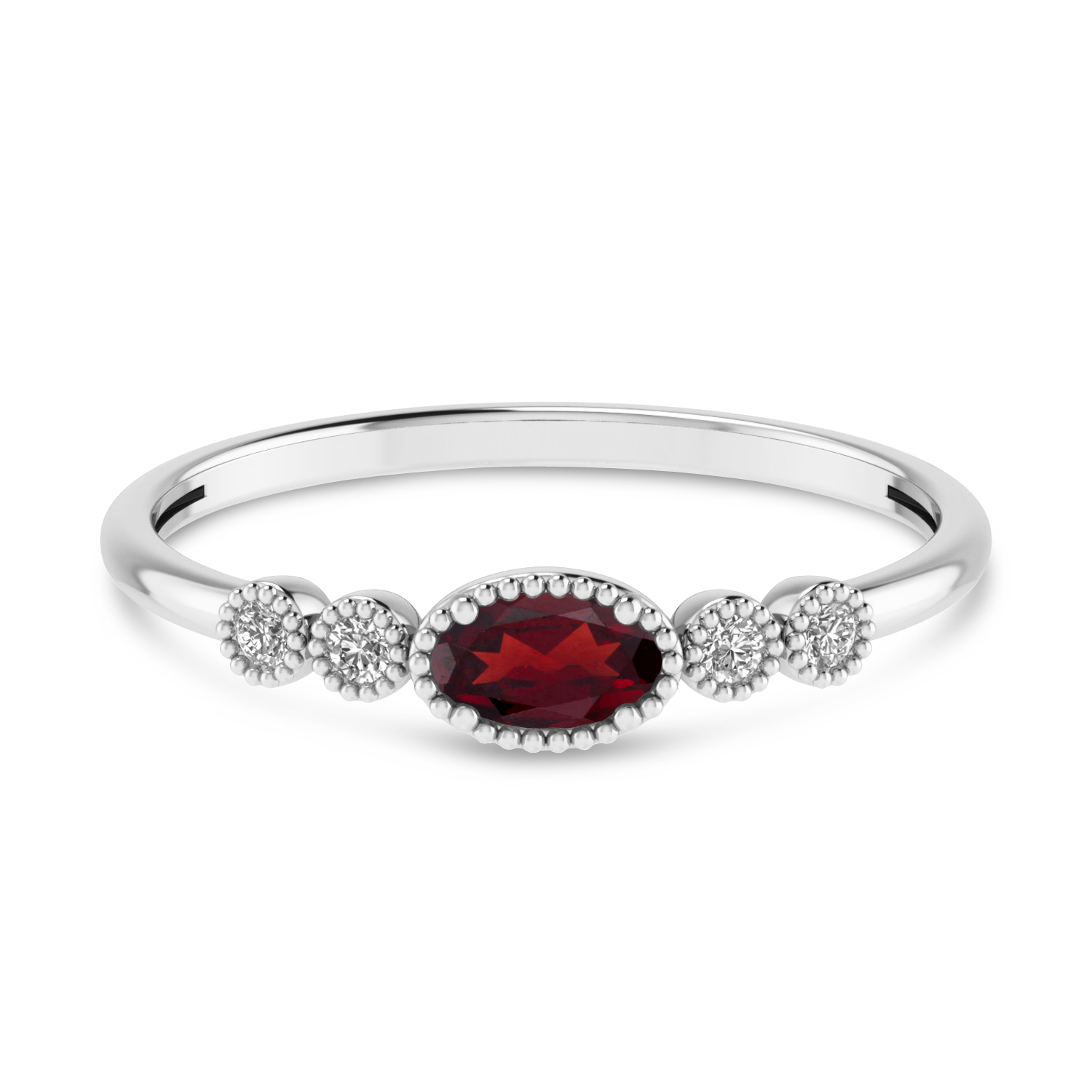 14K White Gold Oval 5x3 mm Garnet and Diamond Stackable Ring