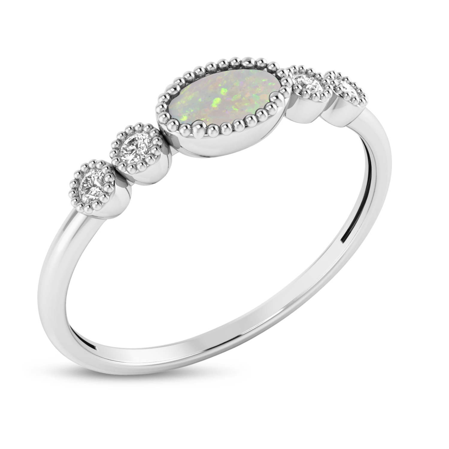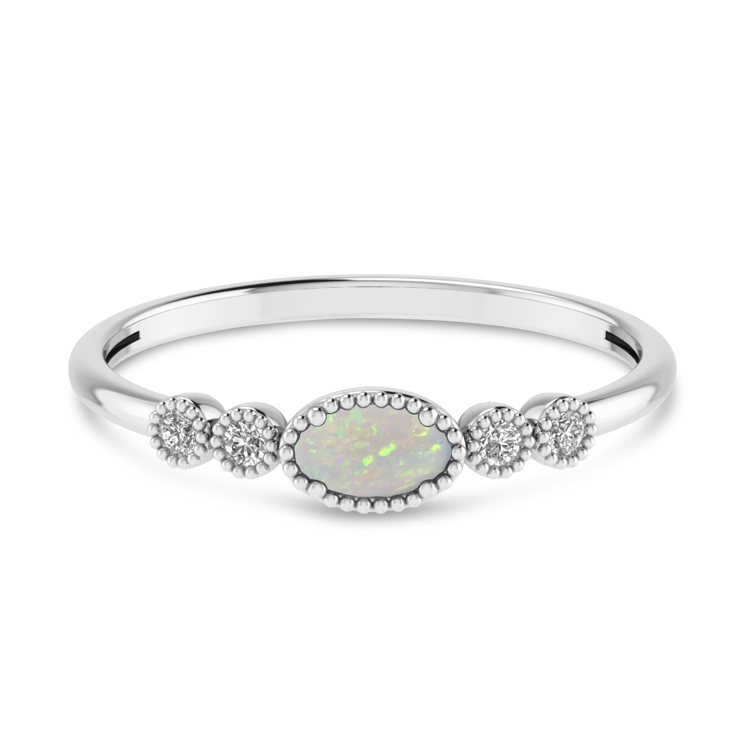 14K White Gold 5x3 mm Oval Opal and Diamond Stackable Ring