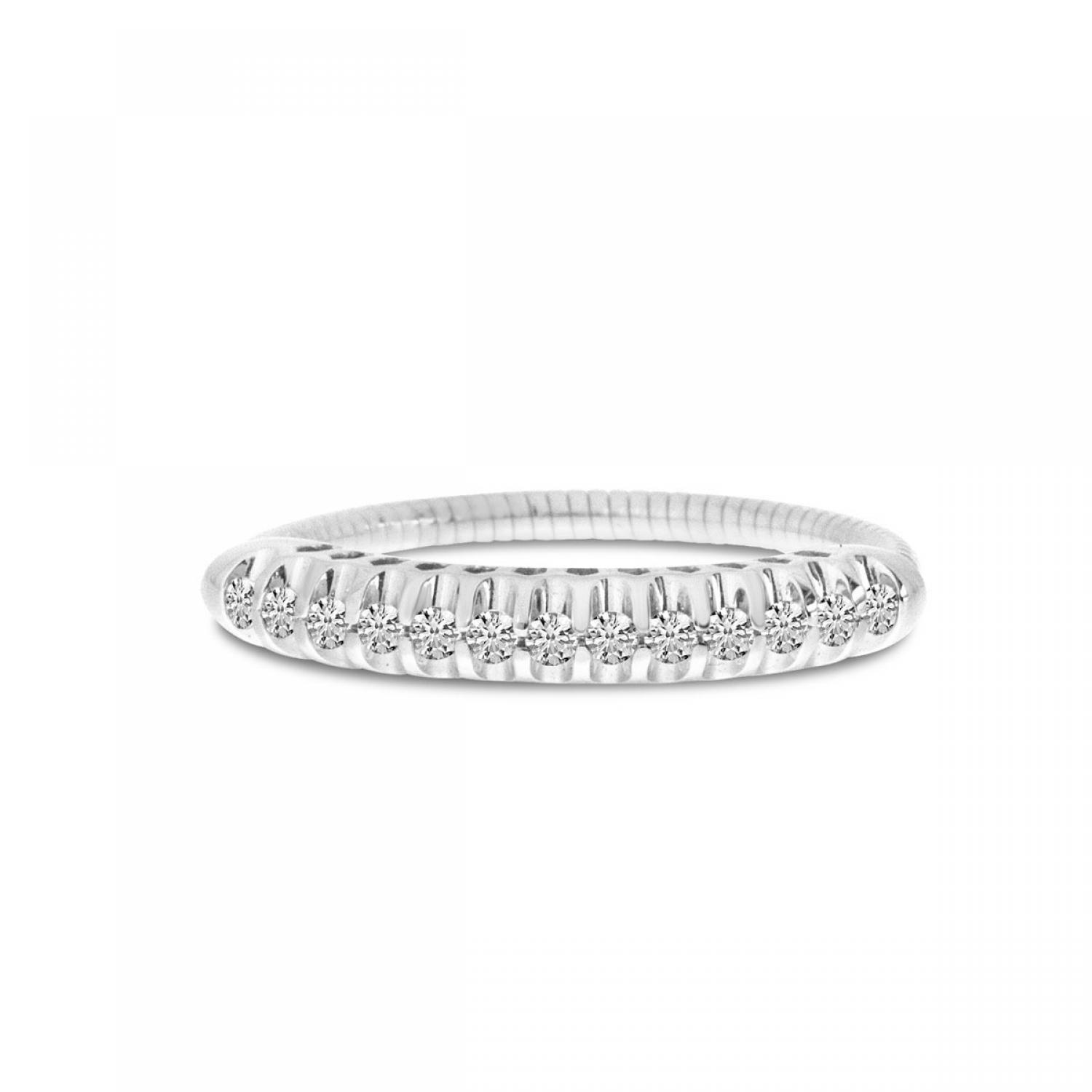 14K White Gold Pave Diamond Stretch Ring with 0.25 ct of diamonds.