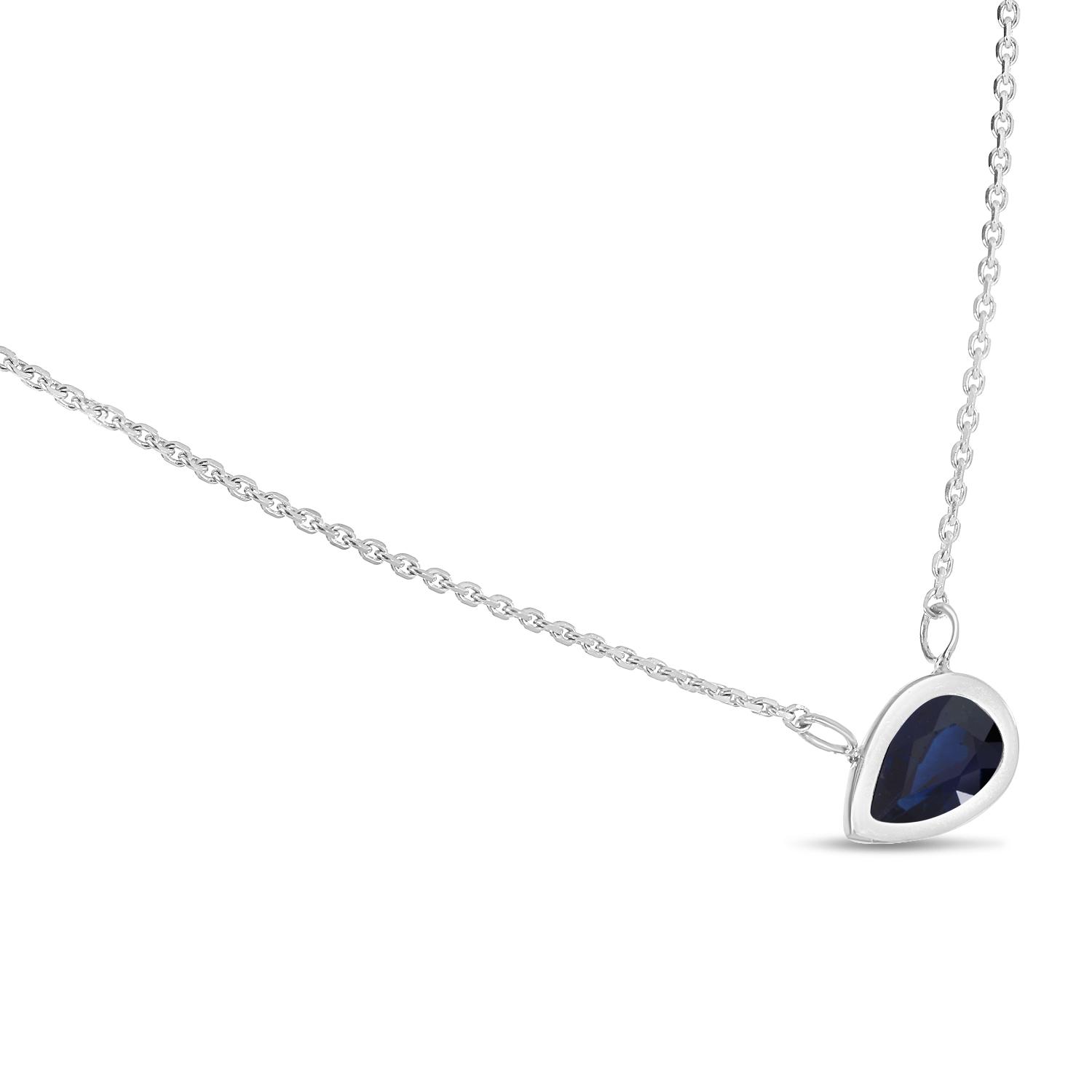 14K White Gold Pear Sapphire East to West Birthstone Necklace