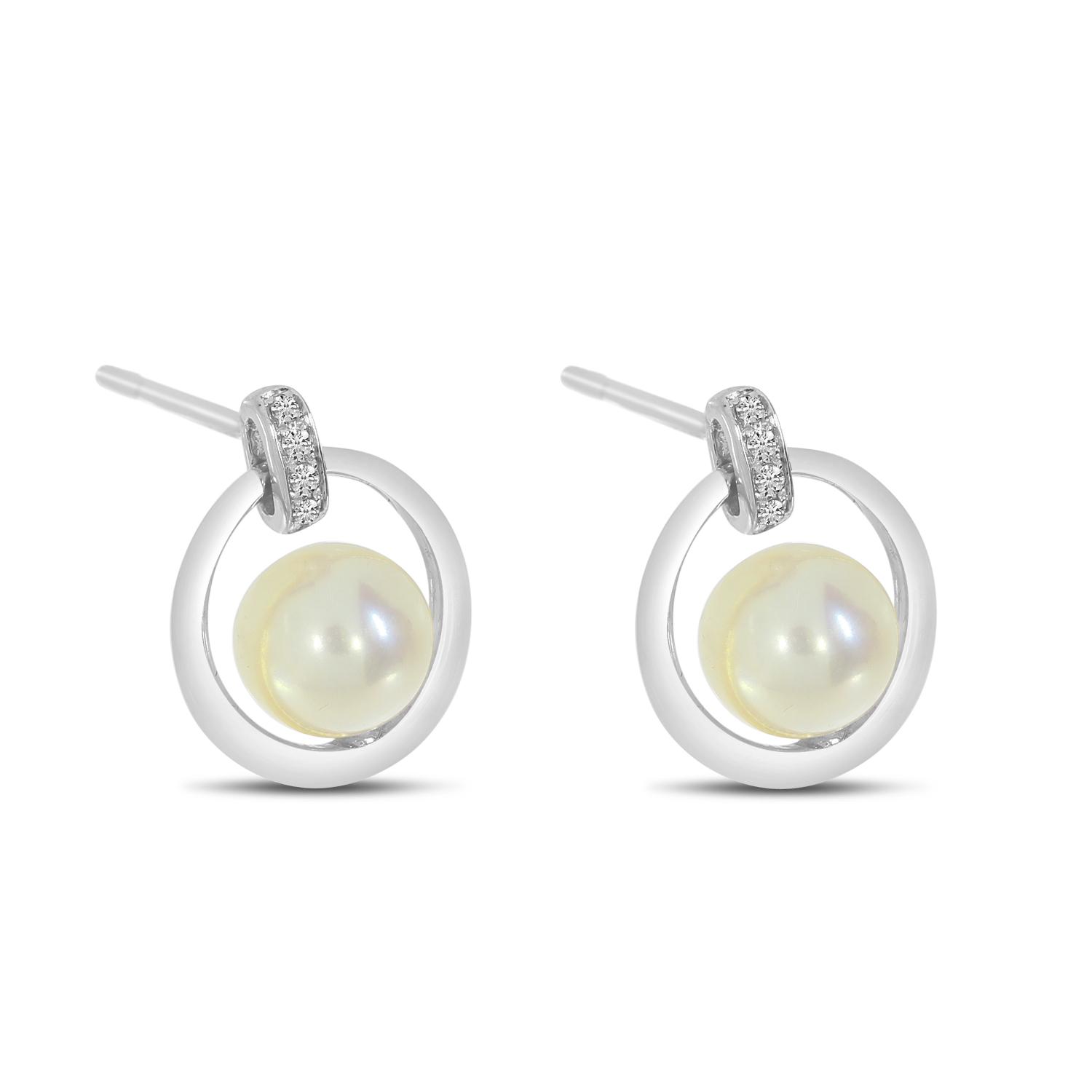 14K White Gold Pearl and Diamond Frontal Hoop Earrings