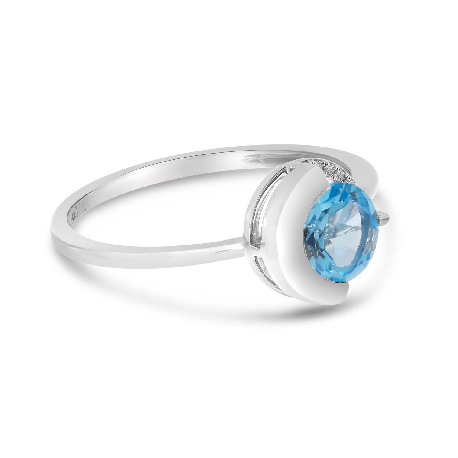 14k White Gold 6 mm Round Blue Topaz with Half Diamond Halo Semi Precious Ring