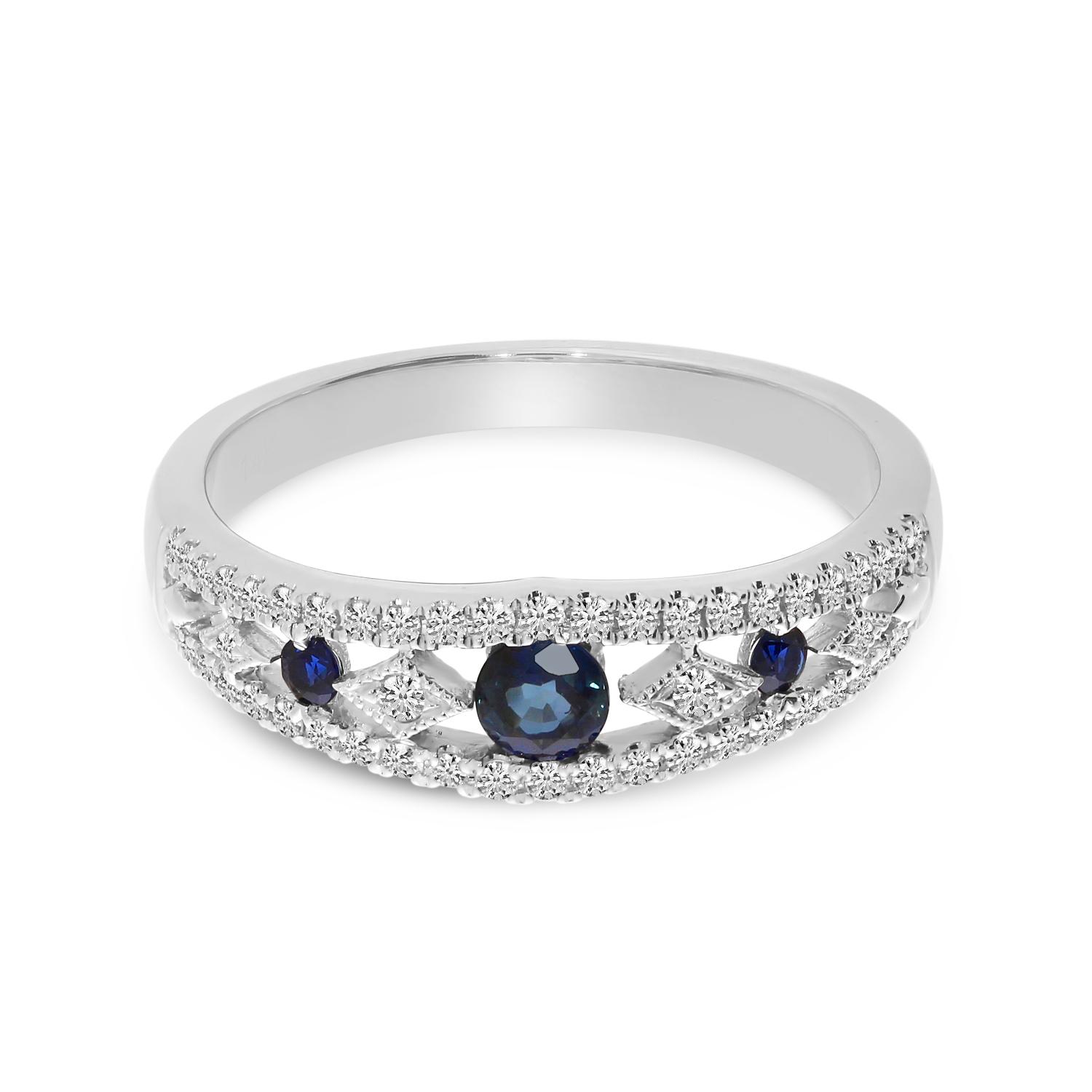 14K White Gold Round Sapphire and Diamond Alternating Band