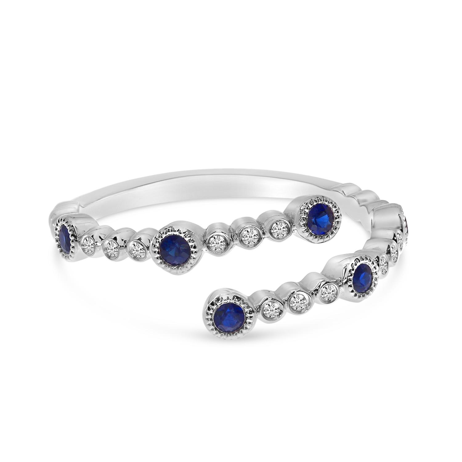 14K White Gold Sapphire and Diamond Bubble Bypass Precious Ring