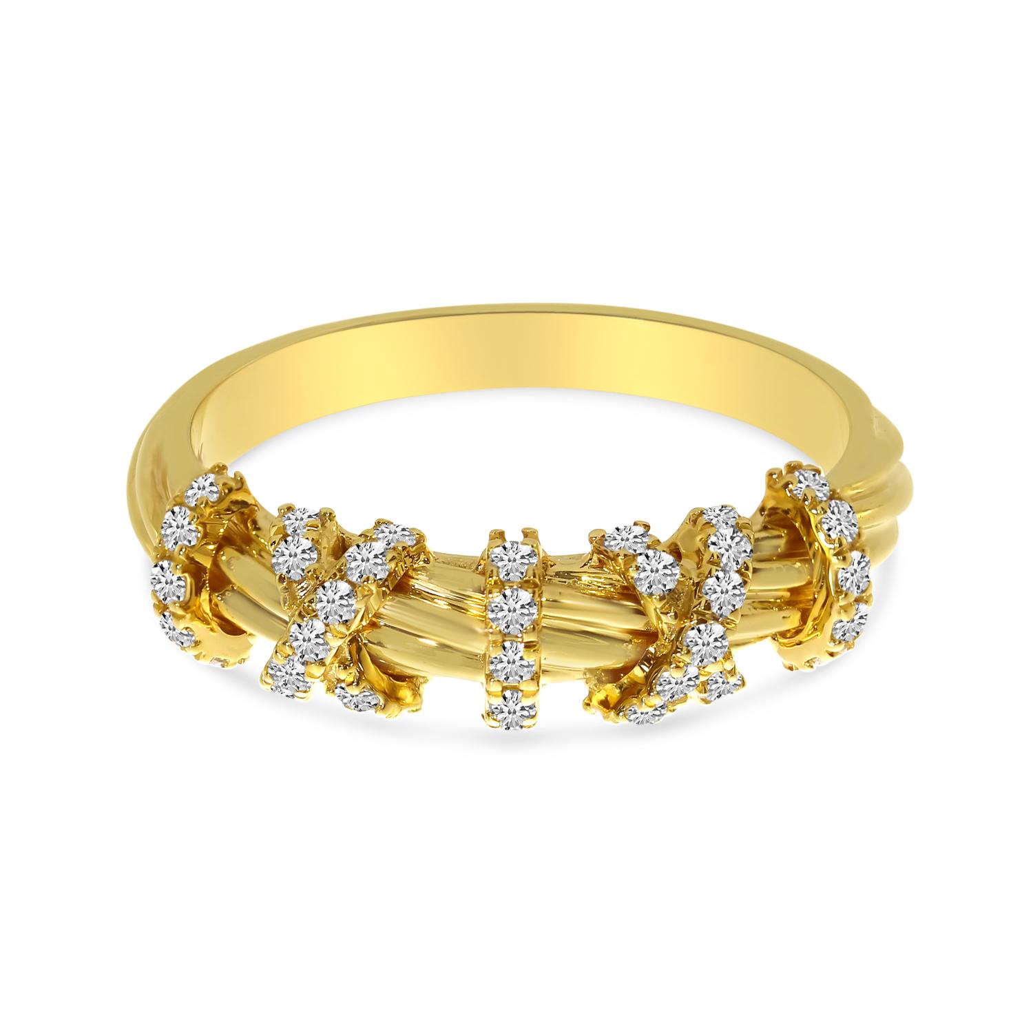 14K Yellow Gold .30 ct Diamond Twisted Textured Band Ring