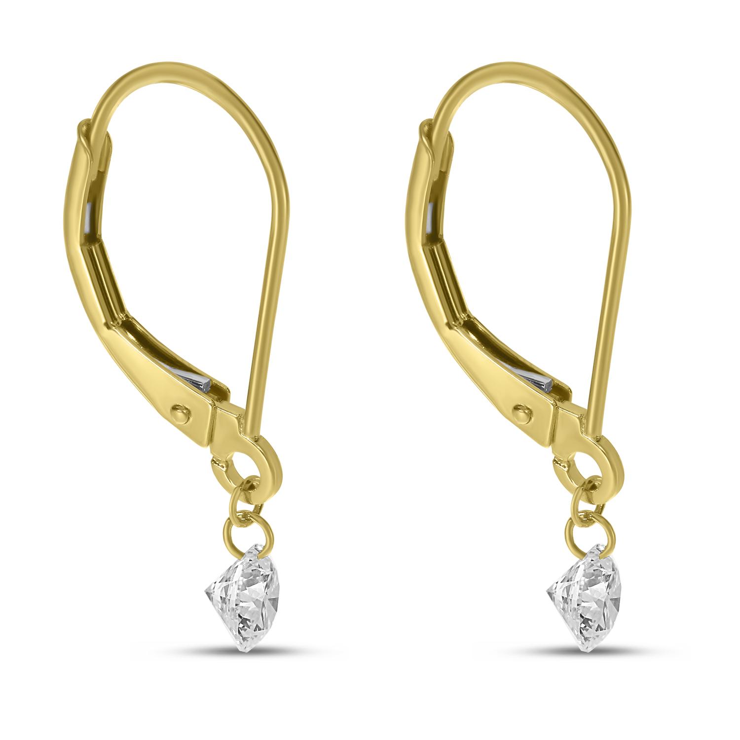 14K Yellow Gold .50 ct Single Dashing Diamonds Leverback Earrings