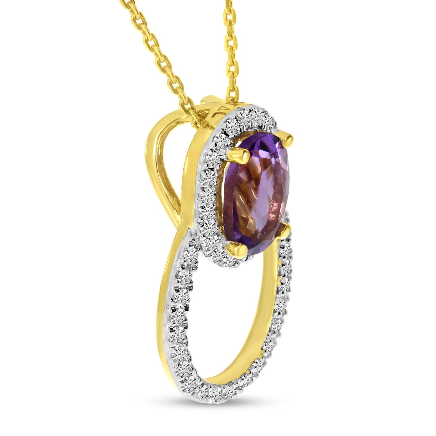14K Yellow Gold Amethyst and Diamond Oval Semi Precious Pendant