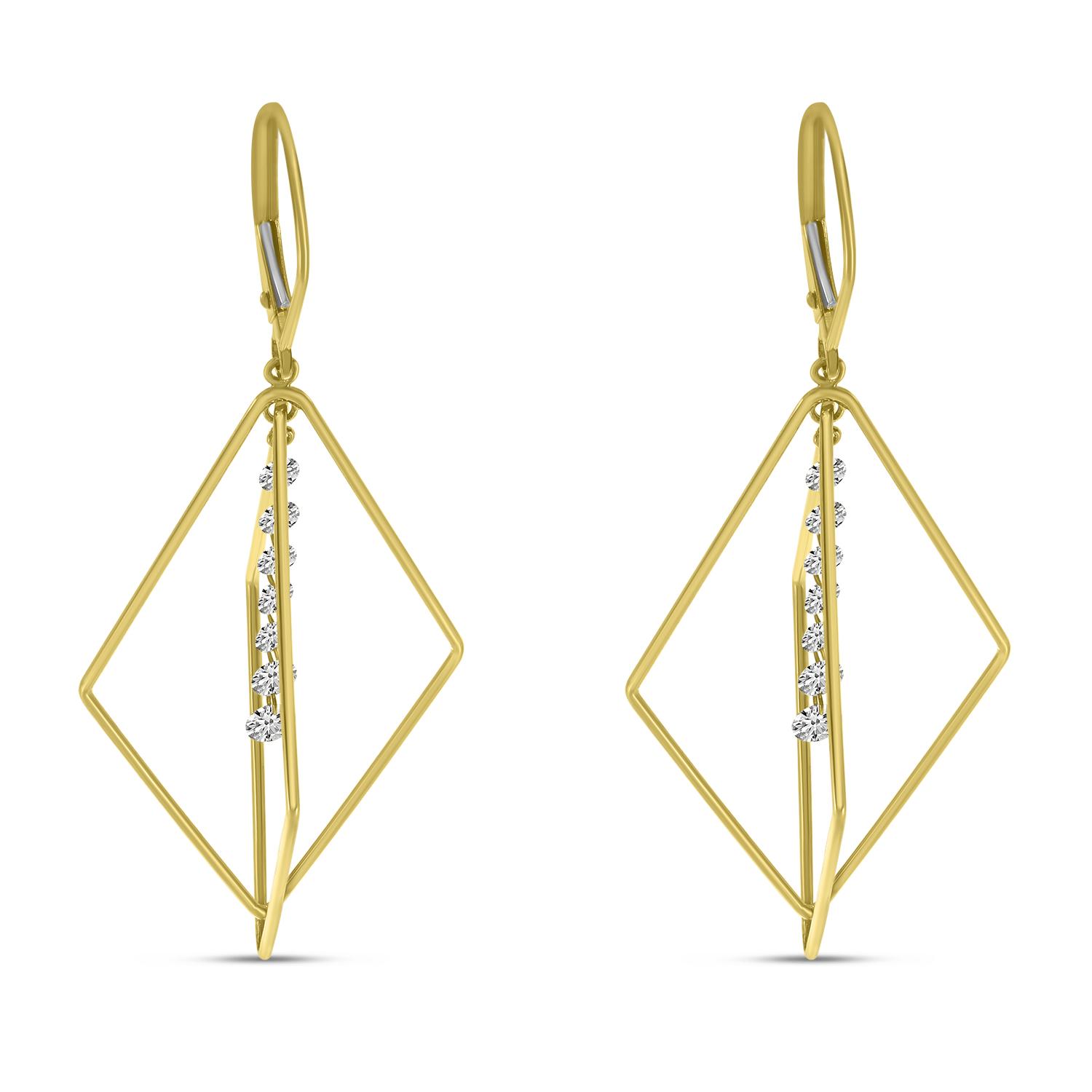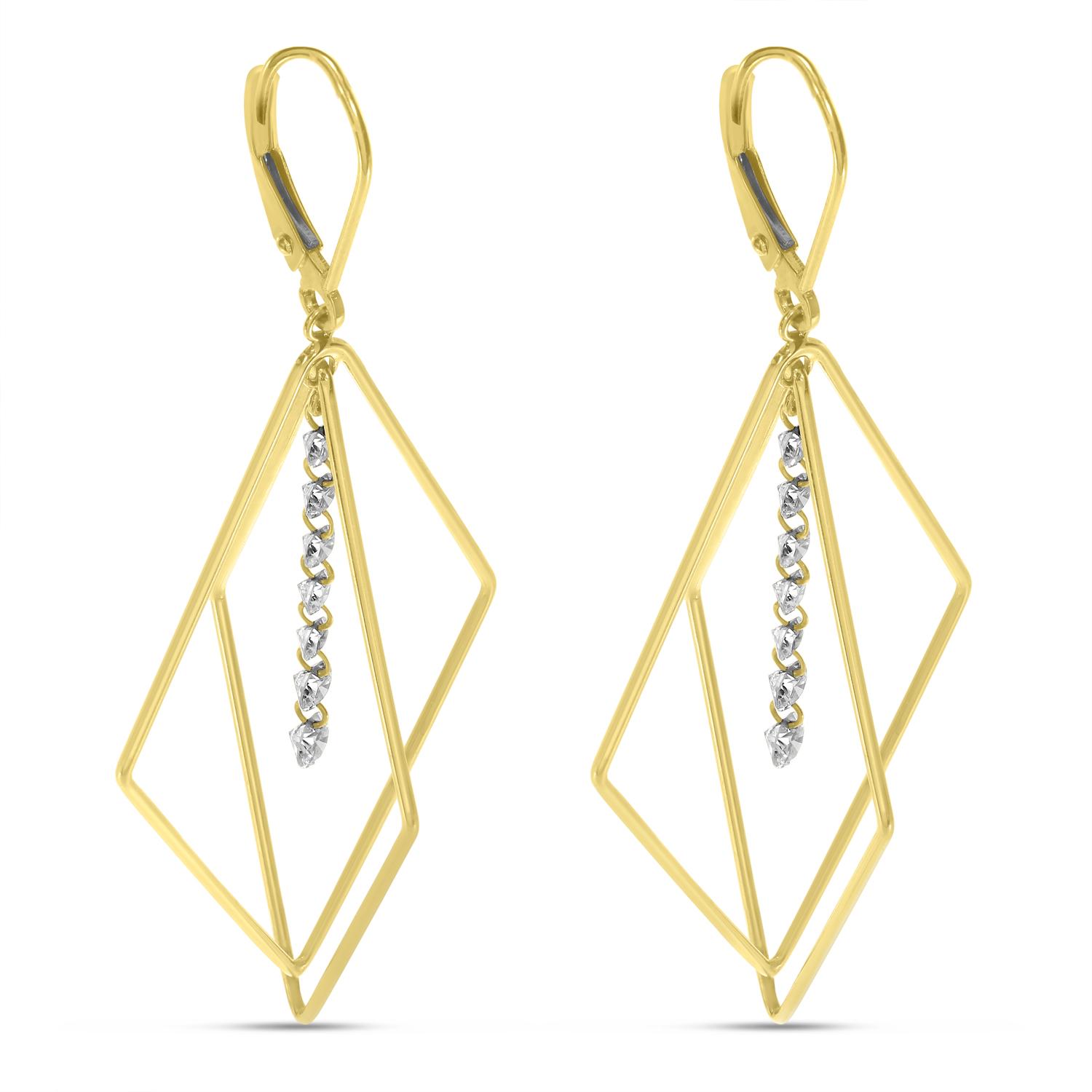 14kt yellow gold Dashing Diamond 3D geometric triangle earrings. Light weight and comfortable on the ear, with so much movement these are certain to become a favorite!