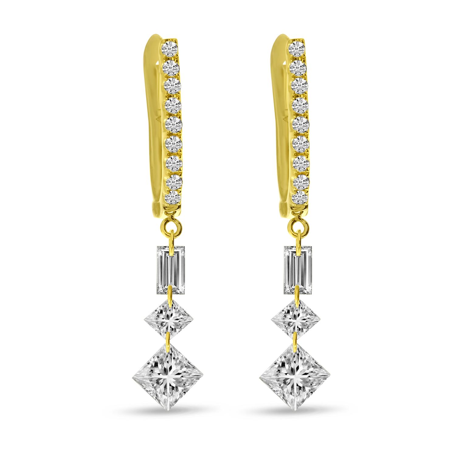 14K Yellow Gold Dashing Diamond Baguette and Princess 1.32 ct Diamond Drop Earrings