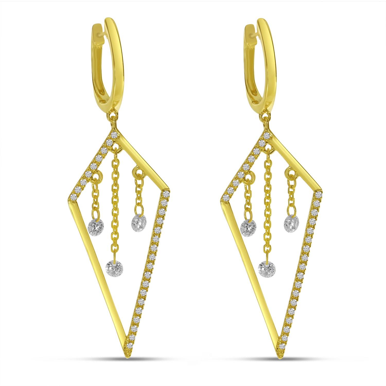 14K Yellow Gold Dashing Diamond Kite Shape Dangle Chain Link Earrings