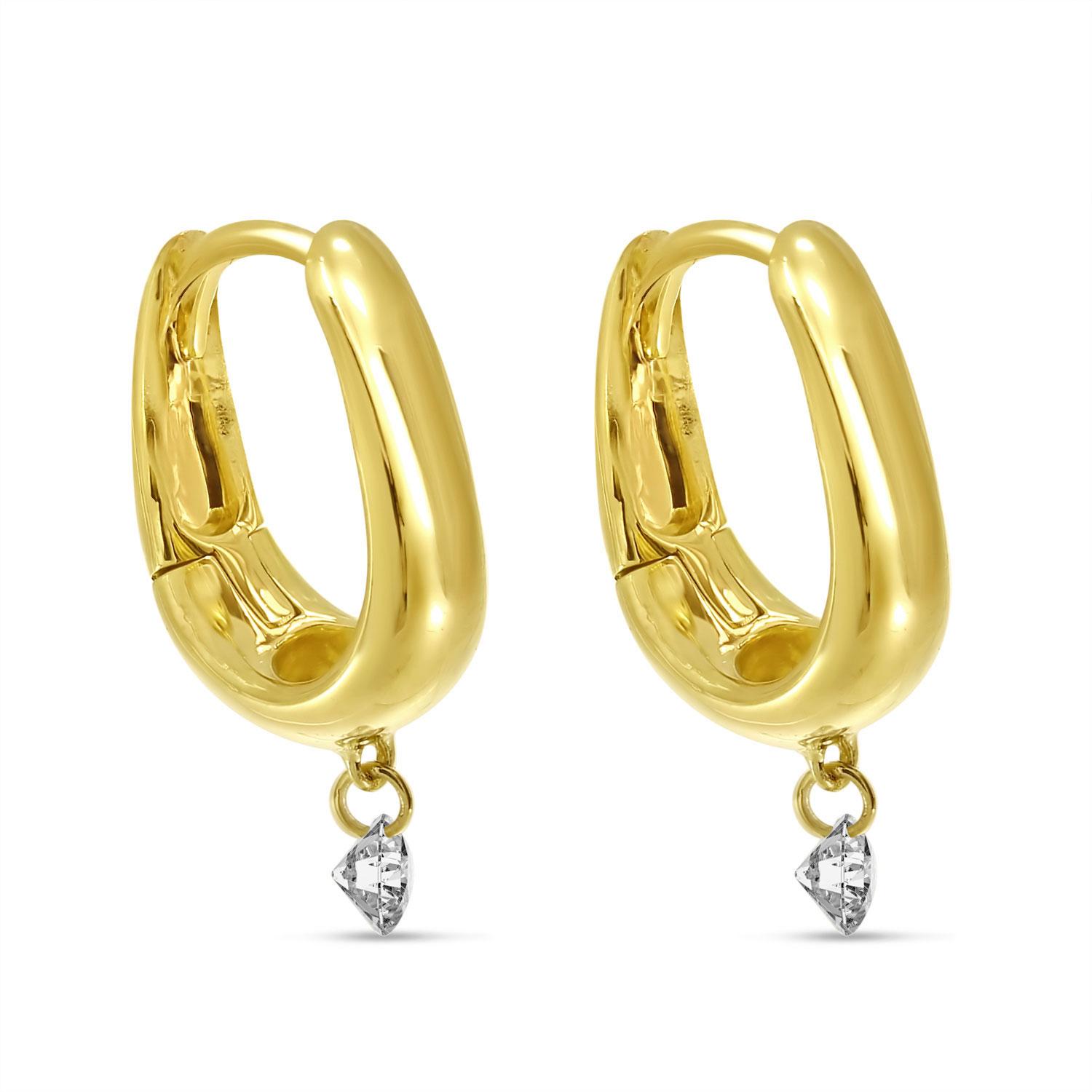14K Yellow Gold Dashing Diamond Thick Gold Huggies