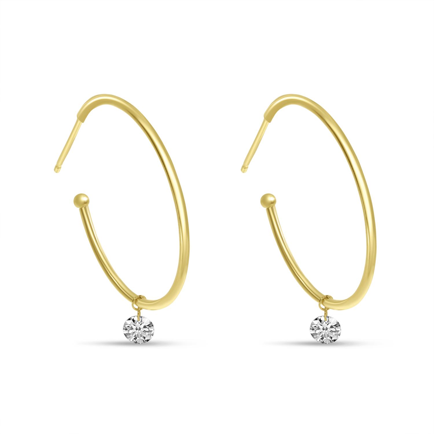 14K Yellow Gold Dashing Diamonds Sliding Diamond Hoop Earrings