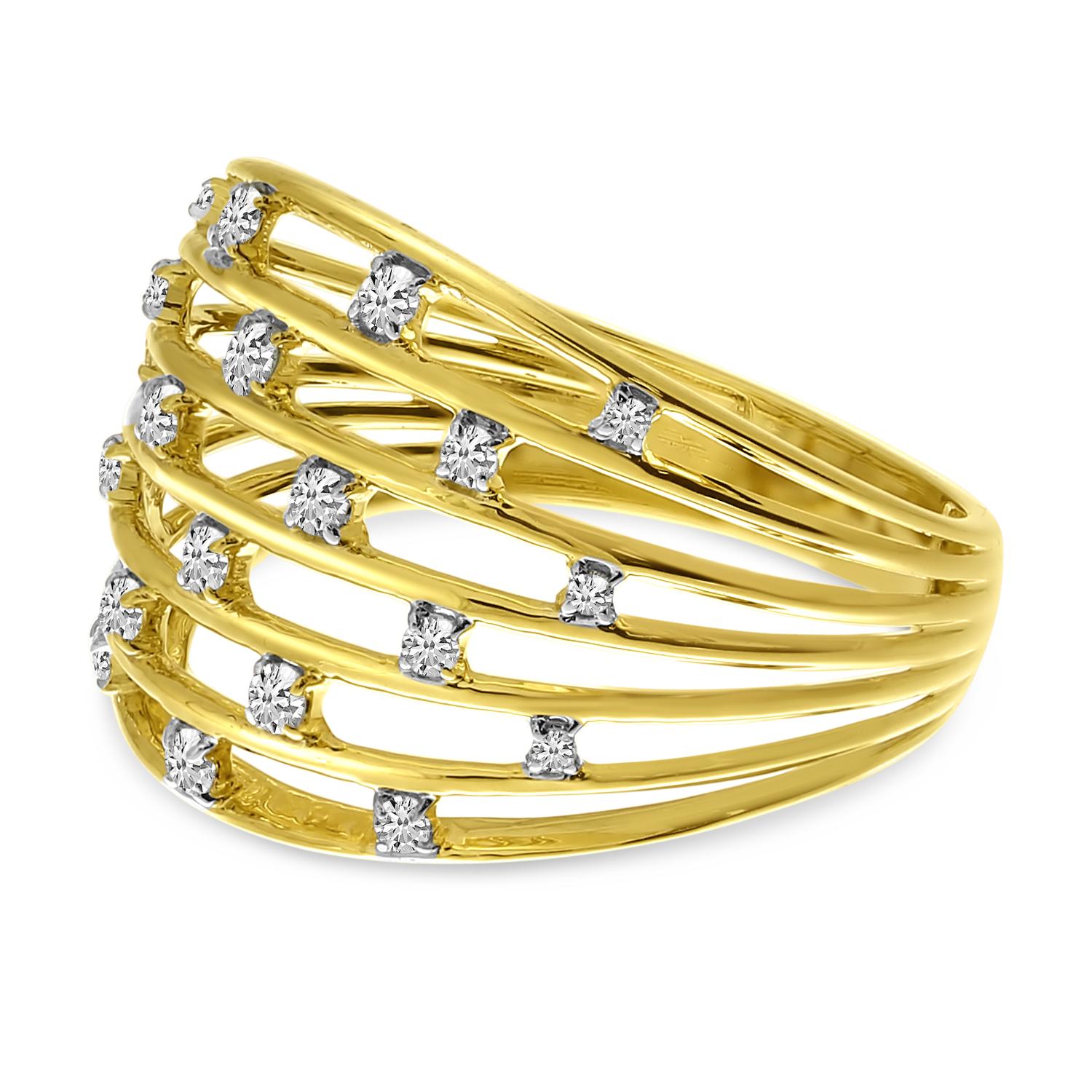14K Yellow Gold Diamond Basketweave Ring