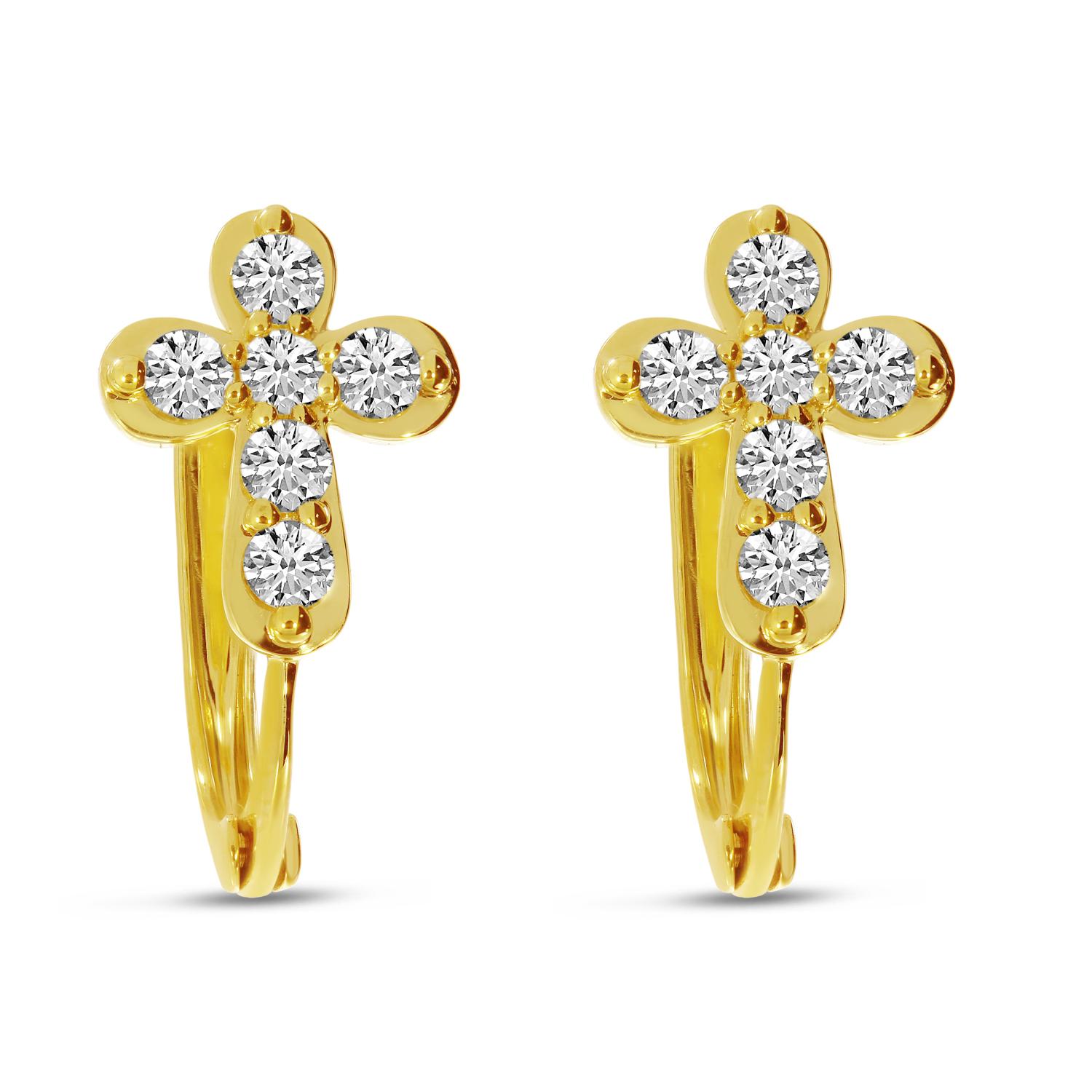 14K Yellow Gold Diamond Bubble Cross Huggie