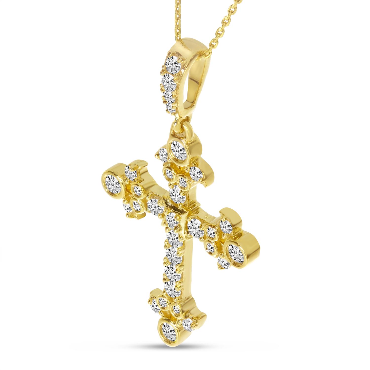 14K Yellow Gold Diamond Fashion Cross Pendant
