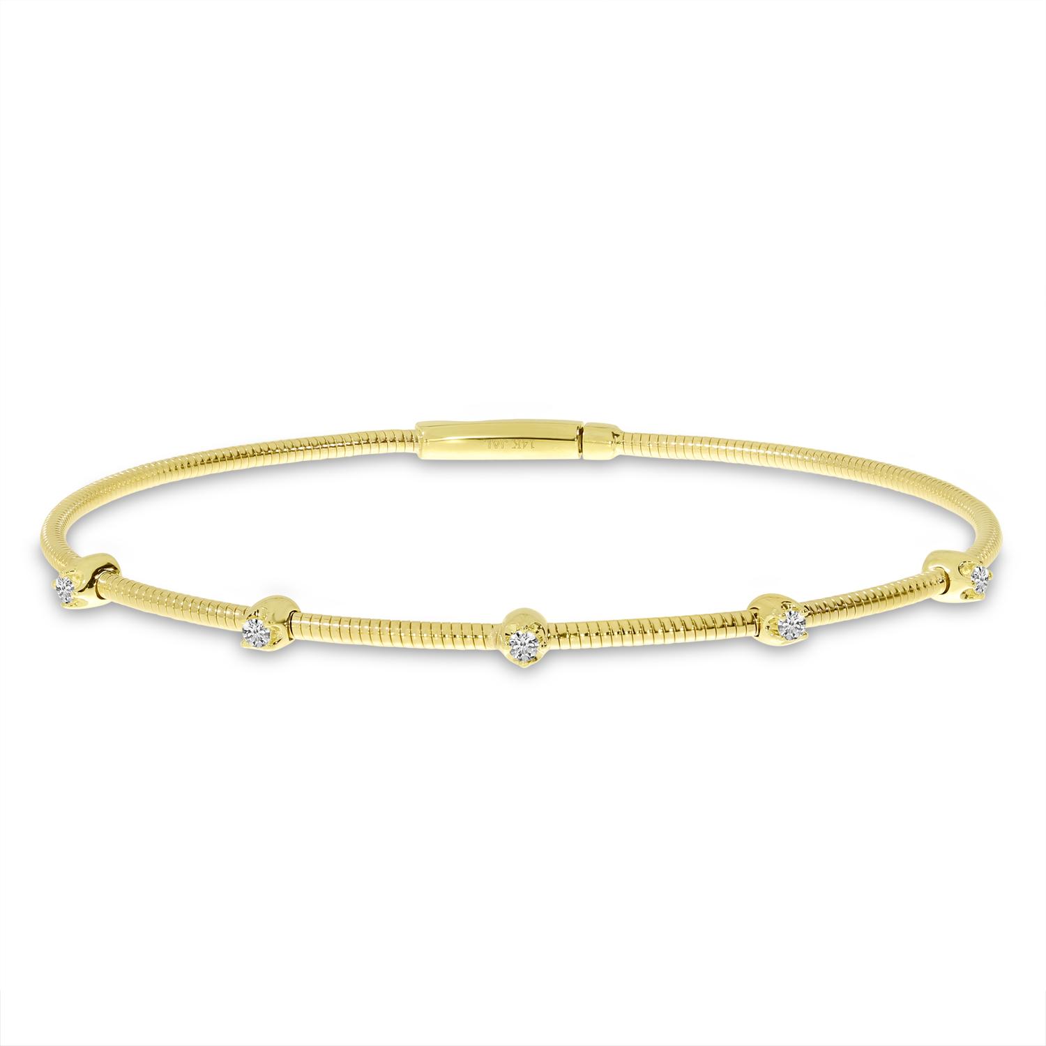 Our flexible diamond bracelet with brilliant diamonds rests comfortably on your wrist and snaps open and closed easily. This bracelet with stunning 0.14 ct of diamonds is available in 14kt yellow, whi