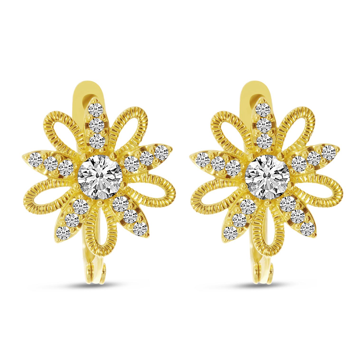 14K Yellow Gold .39 ct Daimond Floral Milgrain Huggie