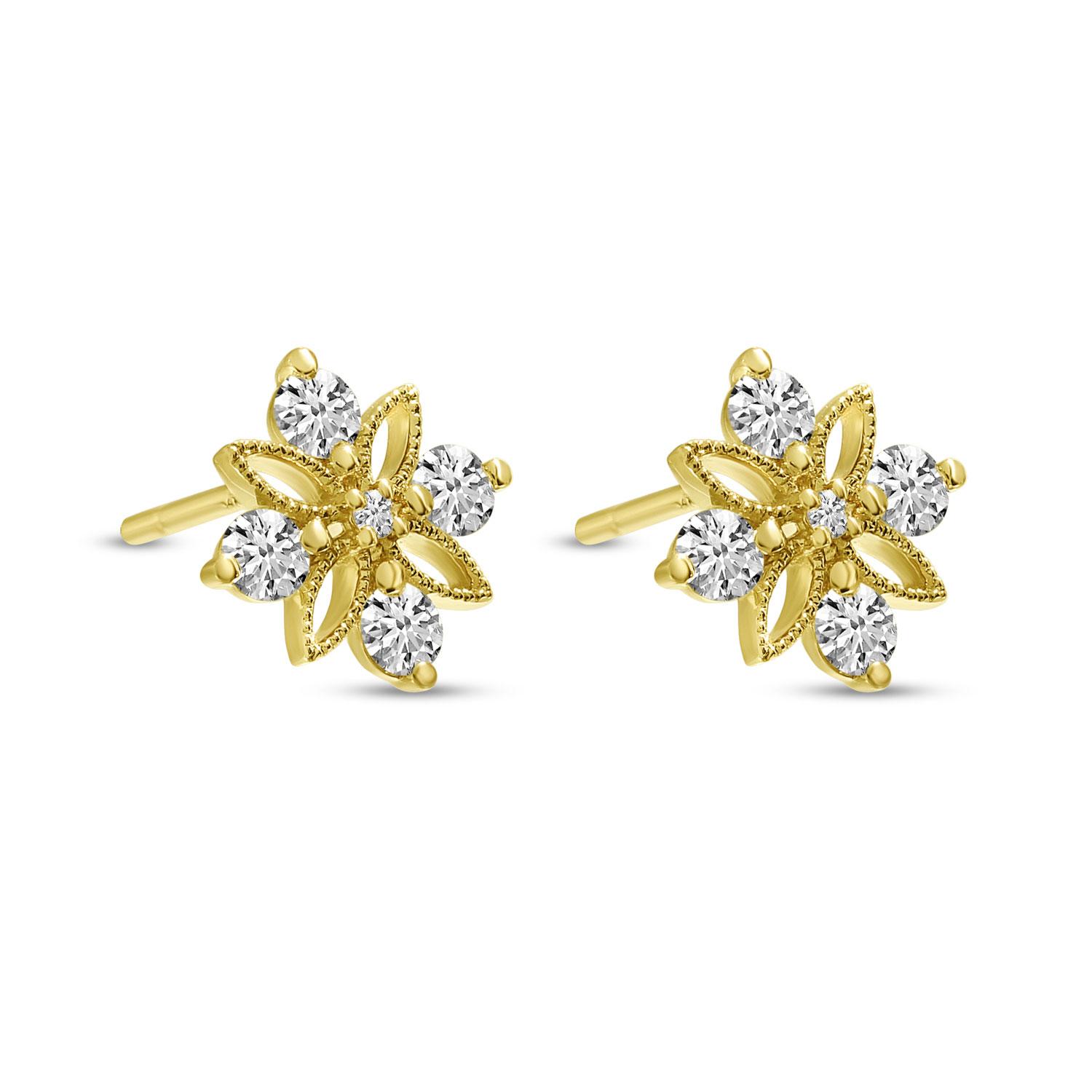 14K Yellow Gold Diamond Floral Stud Earrings