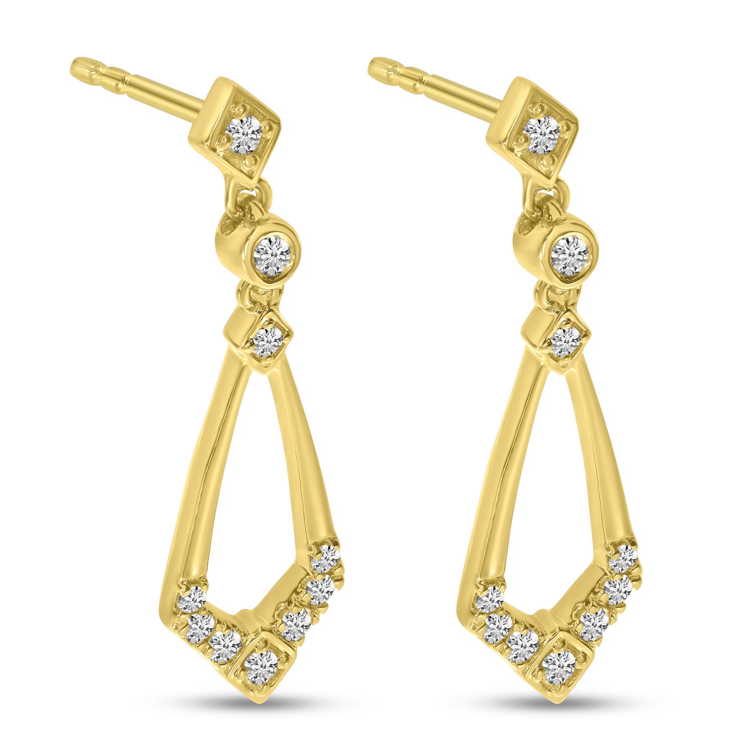 14K Yellow Gold Diamond Geometric Dangle Earrings