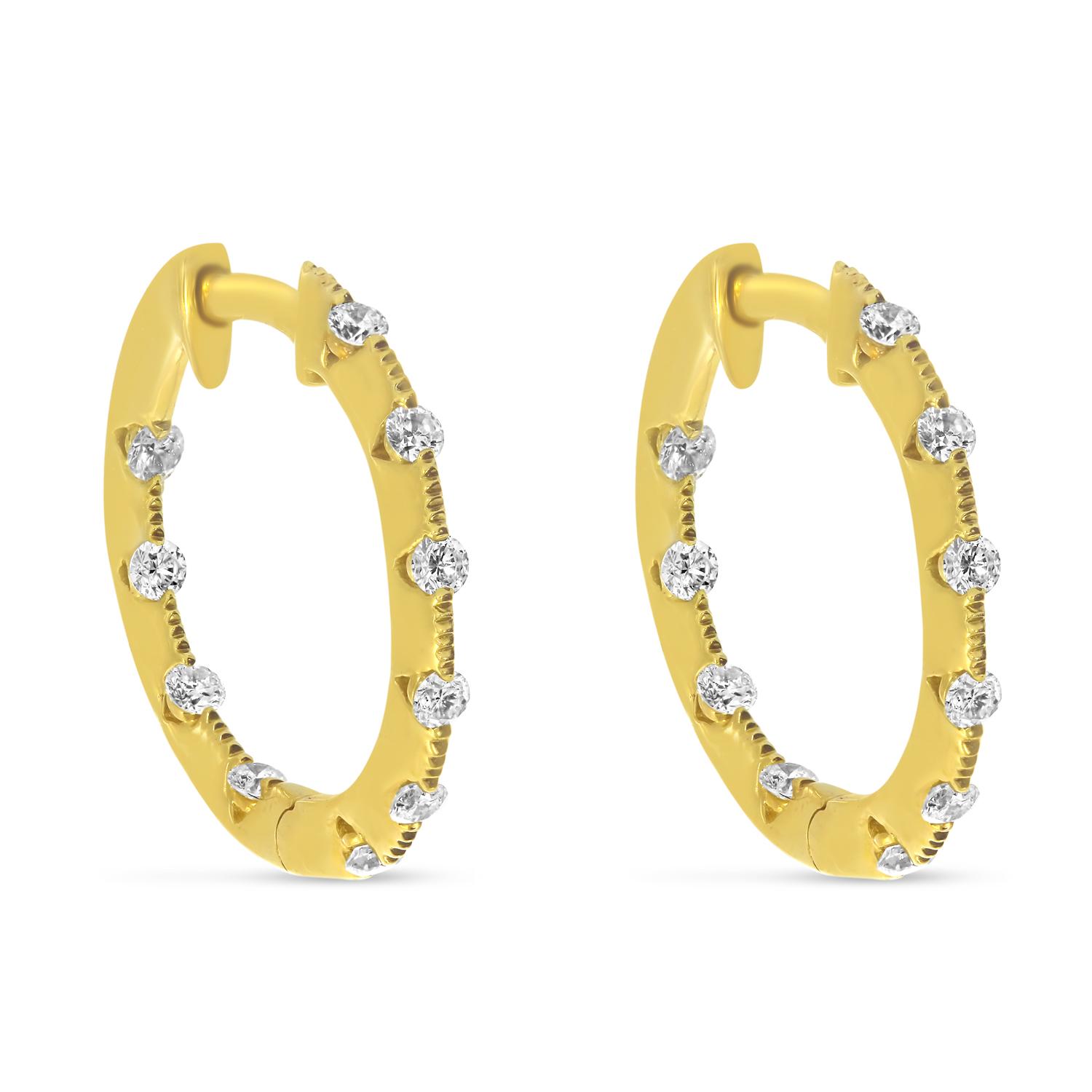 14k Yellow Gold Diamond Hoop Earrings