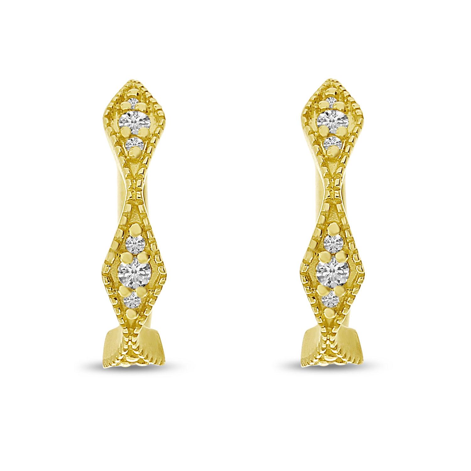 14K Yellow Gold Diamond Millgrain Huggie Earrings