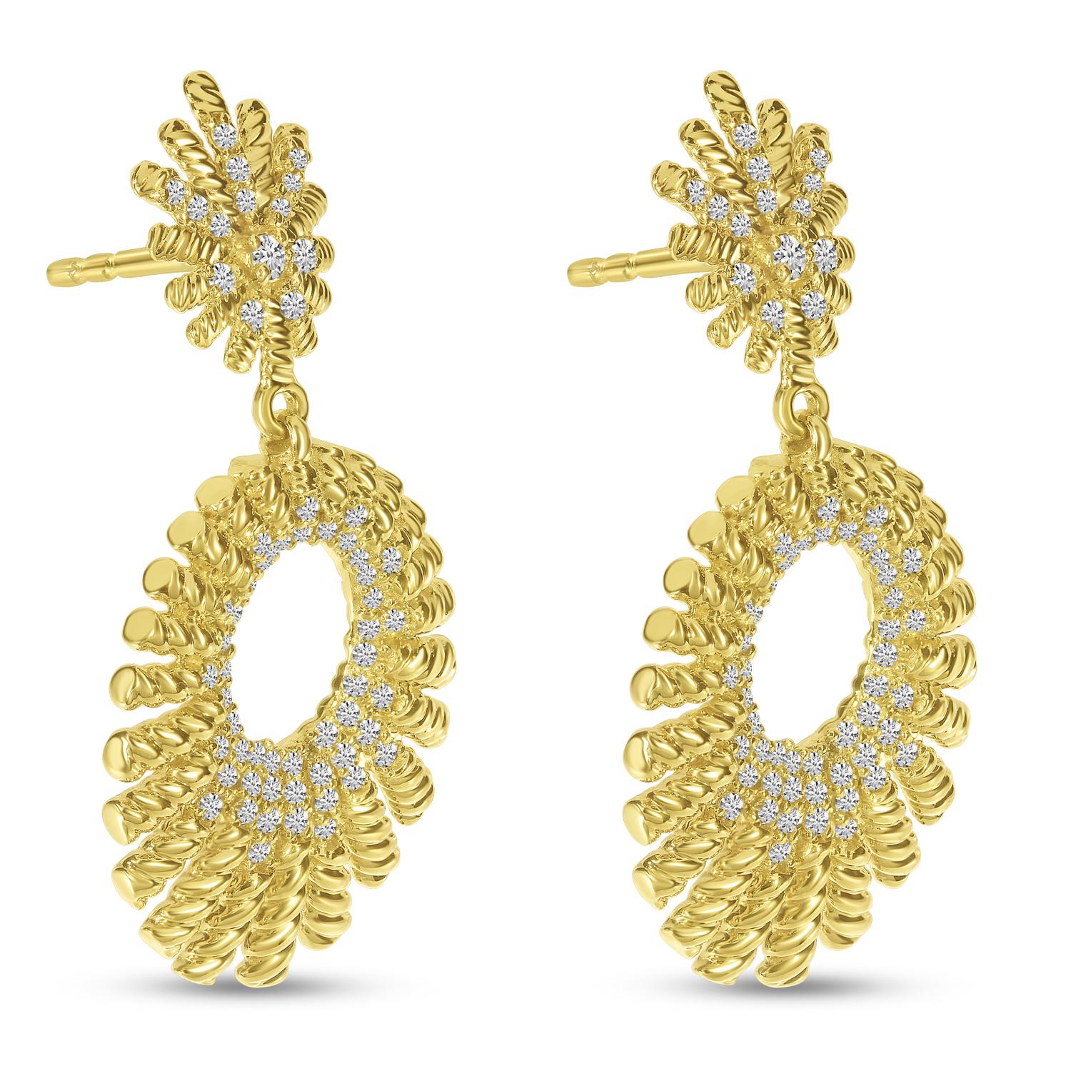 14K Yellow Gold Diamond Textured Oval Dangle Earrings