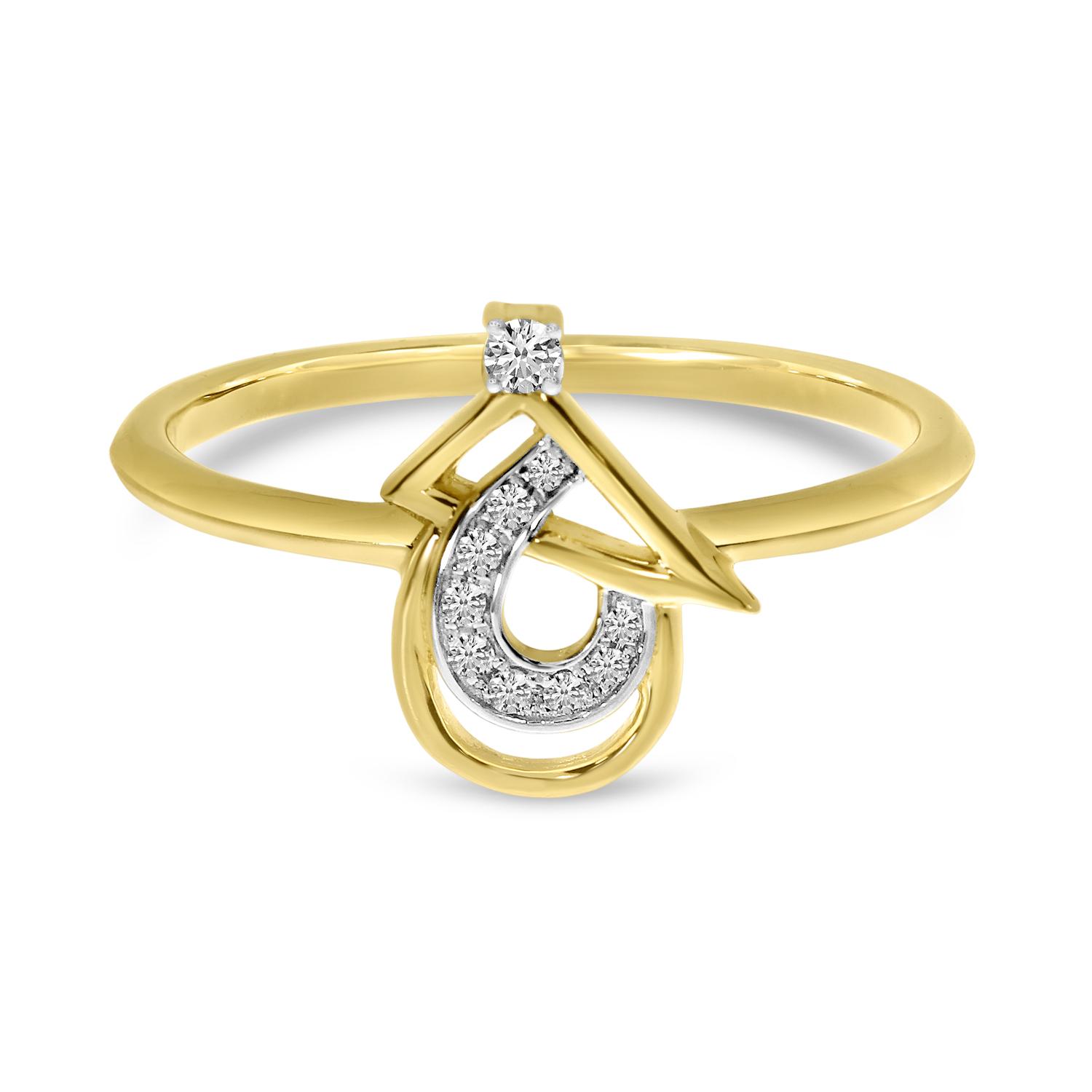 14K Yellow Gold Diamond Triangle and Pear Ring