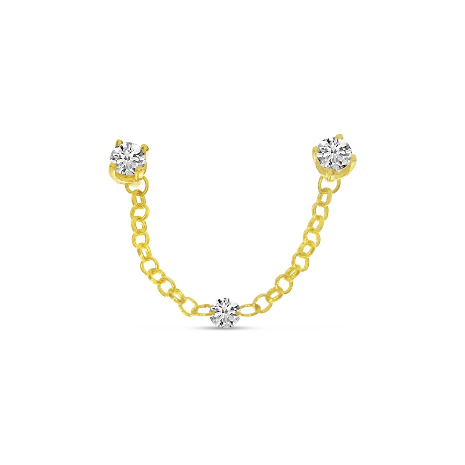 14K Yellow Gold Double Hole Diamond Chain Earrings