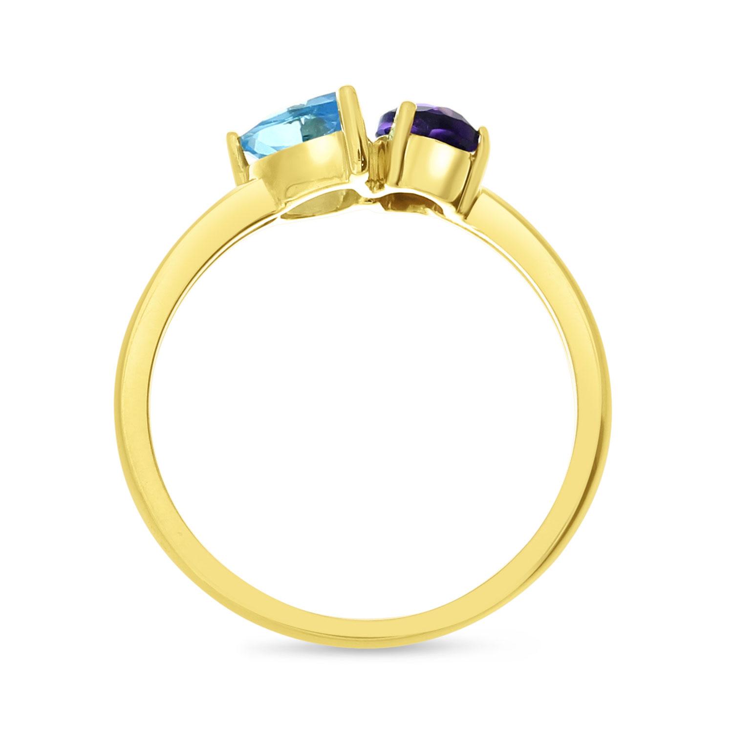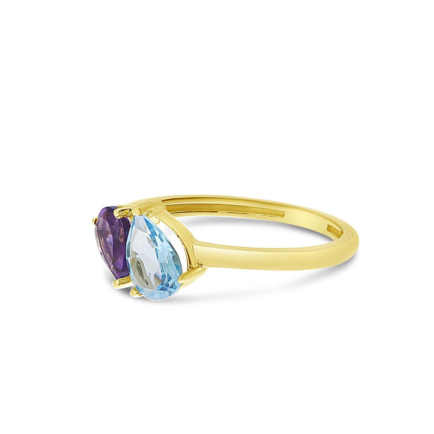 14K Yellow Gold Double Pear Amethyst and Blue Topaz Duo Ring