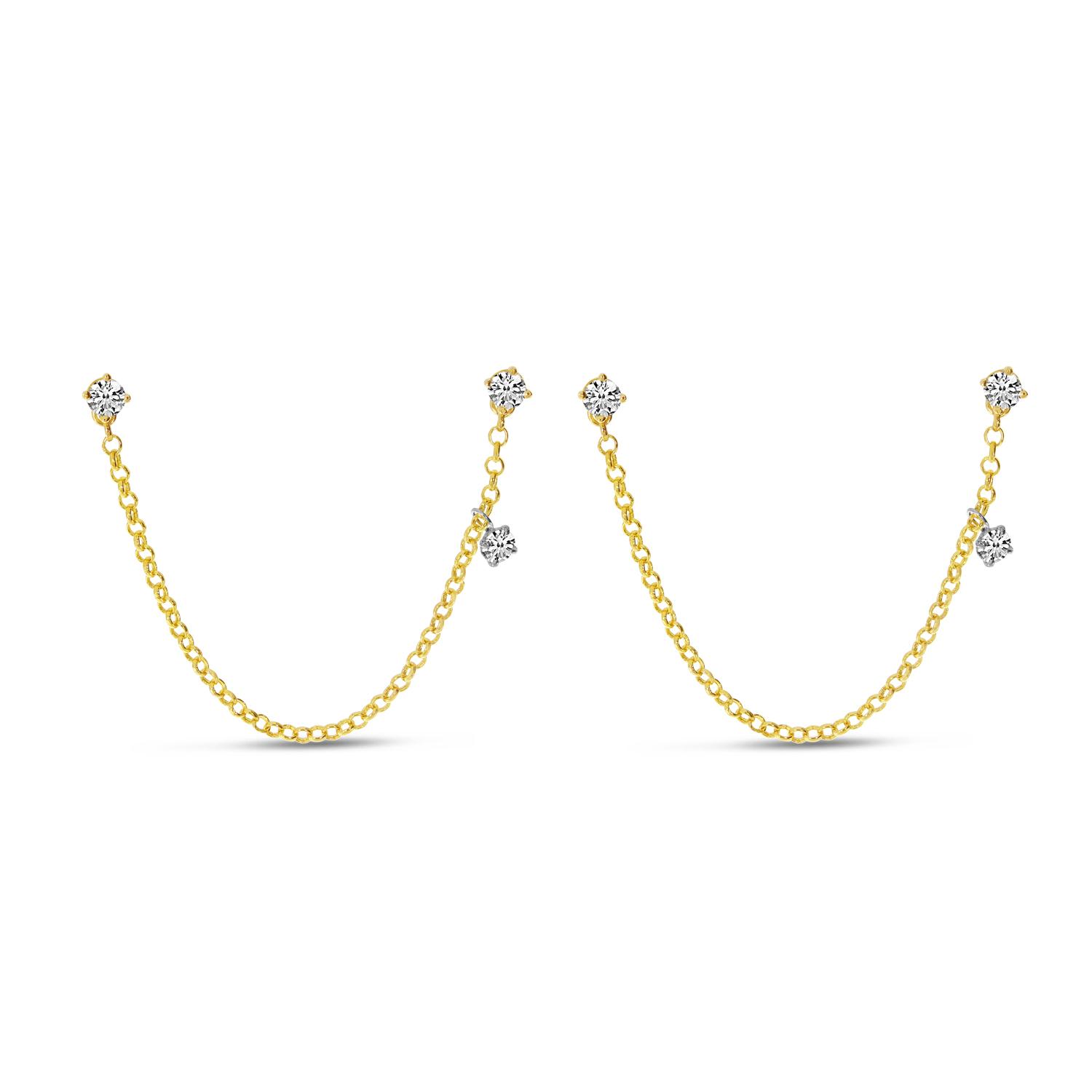 14K Yellow Gold Floating Diamond .24 ct Swinging Diamond Chain Single Earring