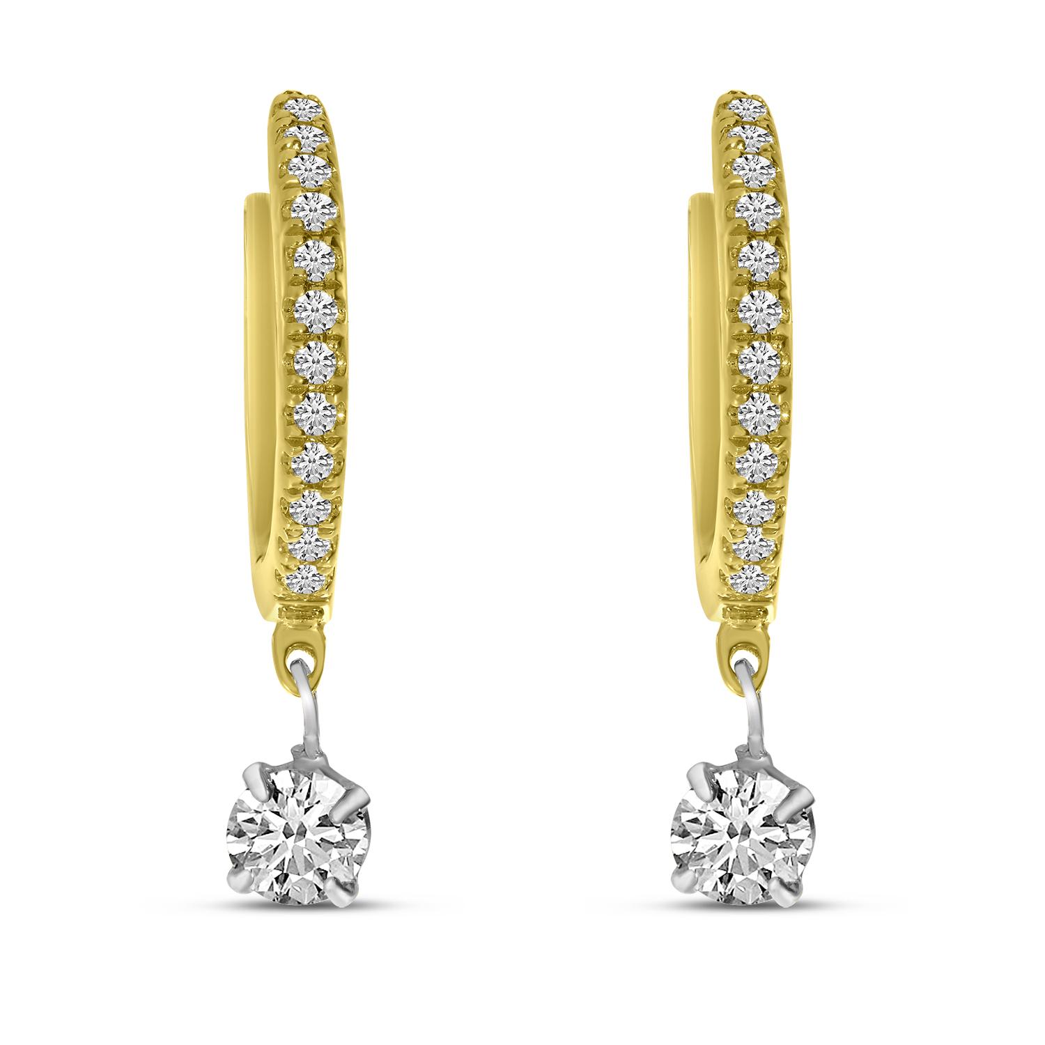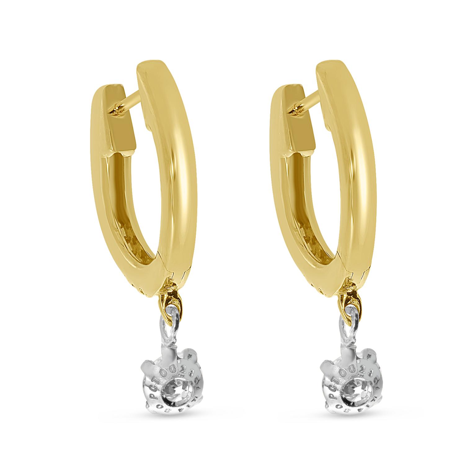 14K Yellow Gold Floating Diamonds Petite Huggie .23 ct Diamond Earrings