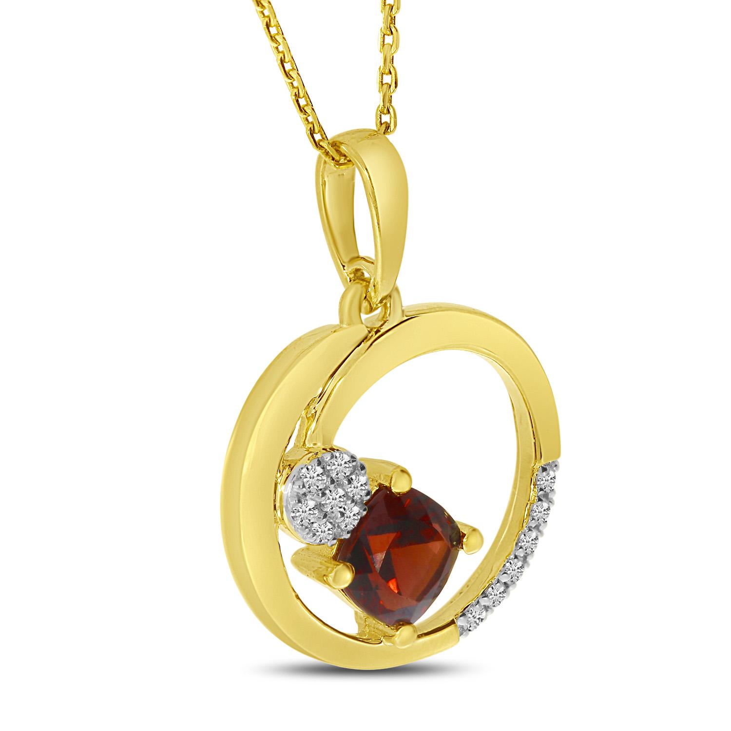 14K Yellow Gold Garnet and Diamond Scattered Open Circle Pendant