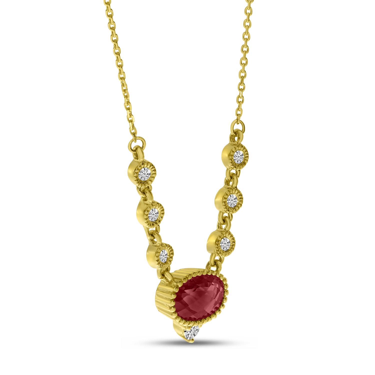 14k Yellow Gold Garnet Oval with Diamond Milgrain Bezel Necklace