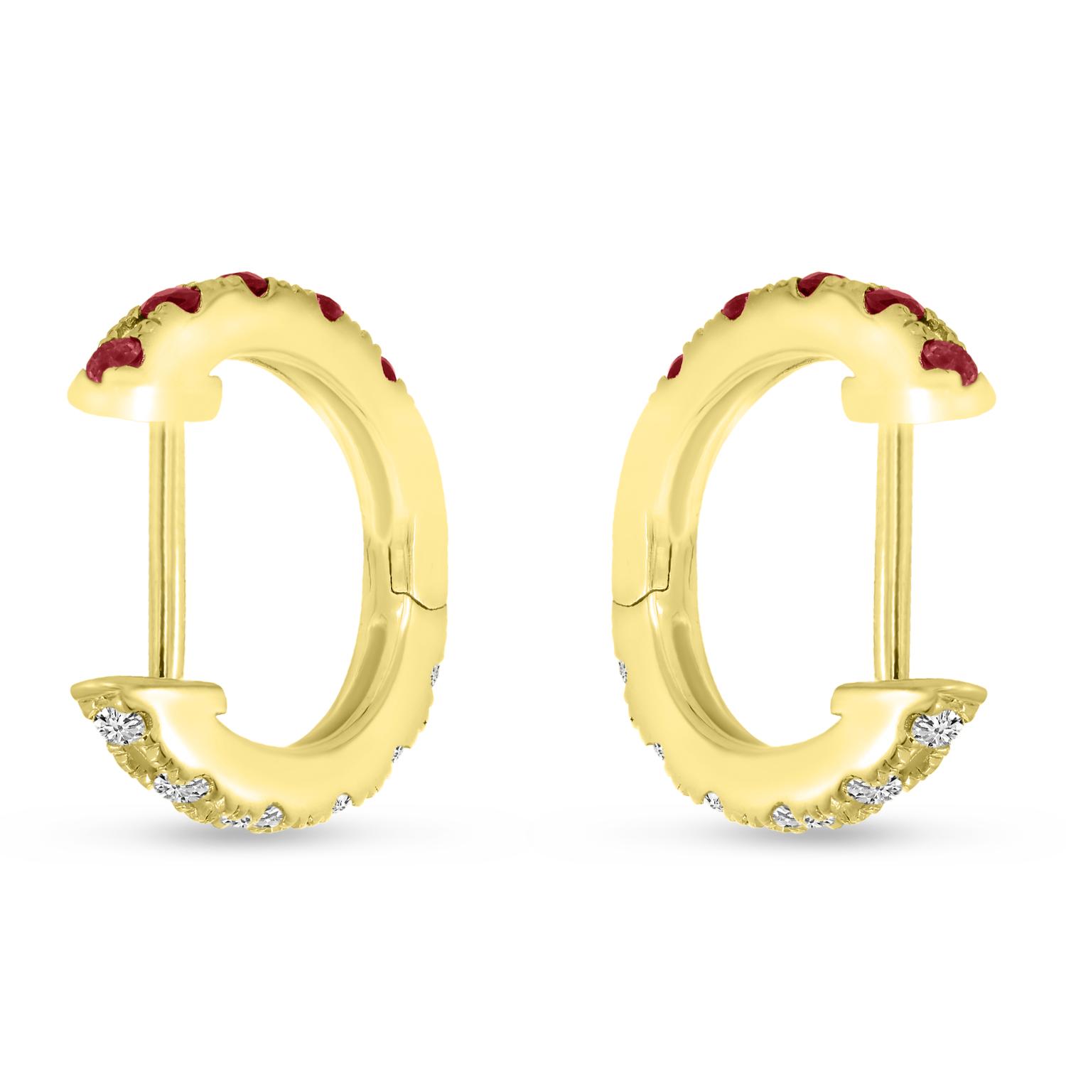 14K Yellow Gold Half Ruby Half Diamond Reversible Precious Huggies