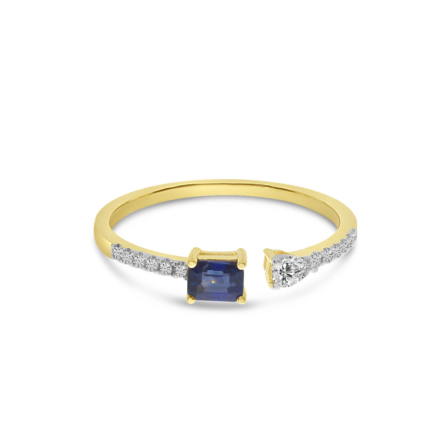 14K Yellow Gold Octagon Sapphire and Pear Diamond Duo Ring