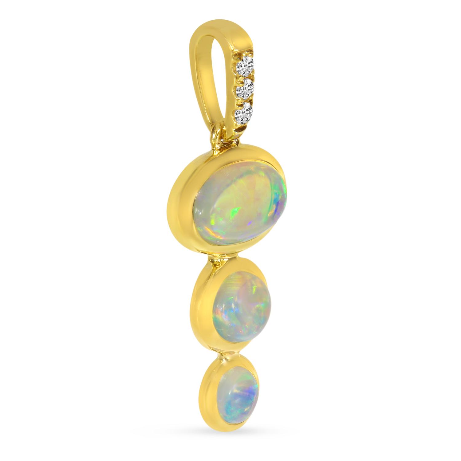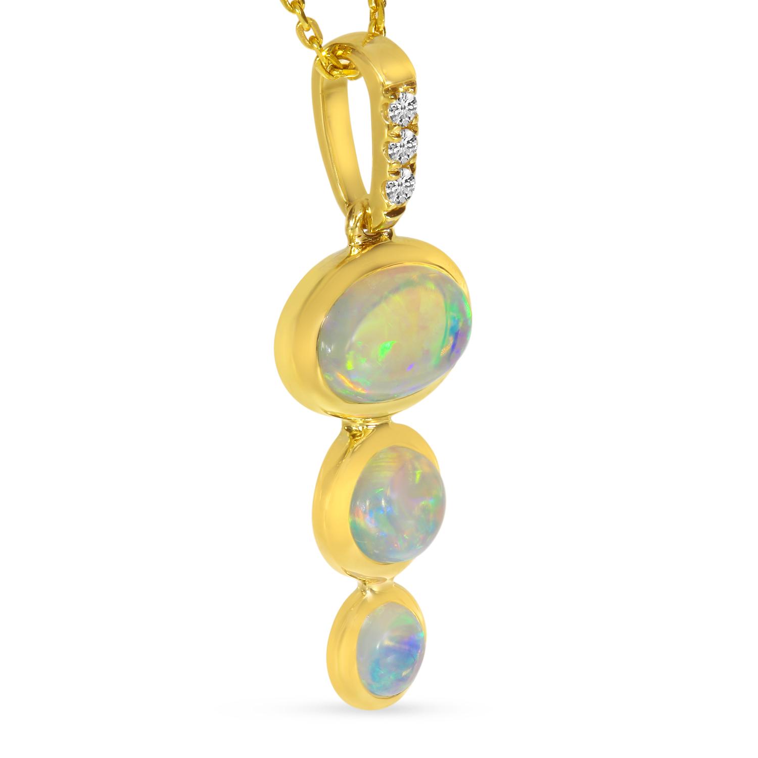 14K Yellow Gold Round and Oval Opal and Diamond Graduated Pendant