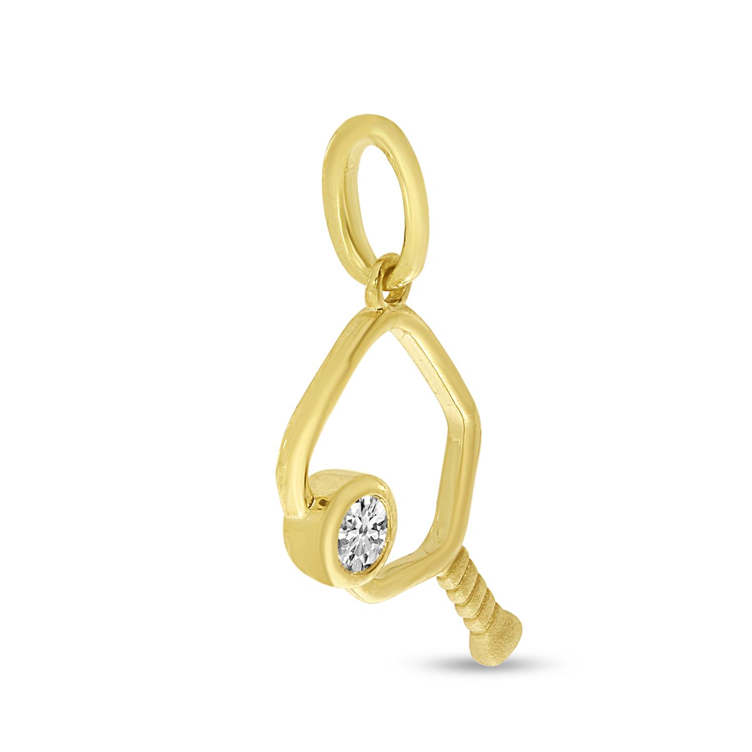 14K Yellow Gold Open Diamond Pickleball Pendant